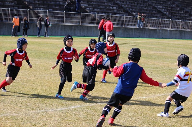 関市ミニラグビー交流会、高学年の部。鈴鹿RSを牽引する小学5年生と6年生。カメラ1台で6学年6チーム…一人ひとりの頑張りを伝えきれないのが残念ですが、それでもみんなこの寒空の中よく頑張った。鈴鹿の中だけで練習していては得られない経験。いい経験、体験ができたと思います。改めまして、このような機会を与えて頂きました、関RSをはじめ、交流頂いた各スクールの皆様ありがとうございました。以上関市ミニラグビー交流会でした。