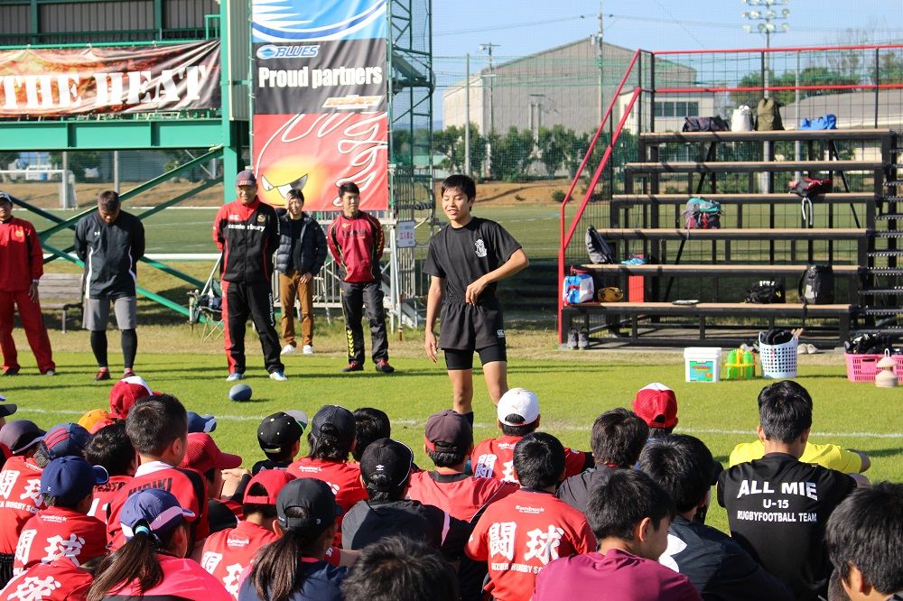 11月18日通常練習四日市jrさんの中学生と6年生も参加してくれ賑やかに練習を実施。天然芝Gと人工芝Gの2面をお借りしてなんとも贅沢な練習です。この環境に本当に感謝です。今ある環境を当たり前と思わず、常に謙虚に活動をしていかないといけません。生徒の皆さんは出世払い。大きくなって、立派なプレーヤーになって、また君たちが子供たちにラグビーを教える。今の感謝をまた次の世代へ繋げて行ってくれたらうれしいですね。そんな出世払い。期待してます。それでは練習スタート、恒例の無茶ぶりコーナーから。全国大会出場の結果報告を中学生2名の生徒にスピーチしてもらいました。