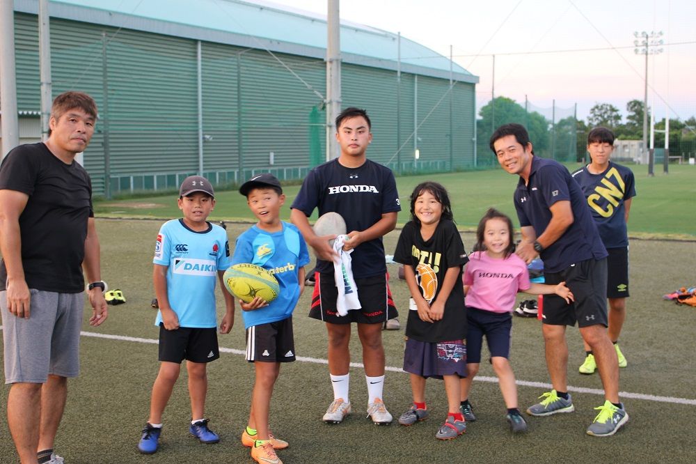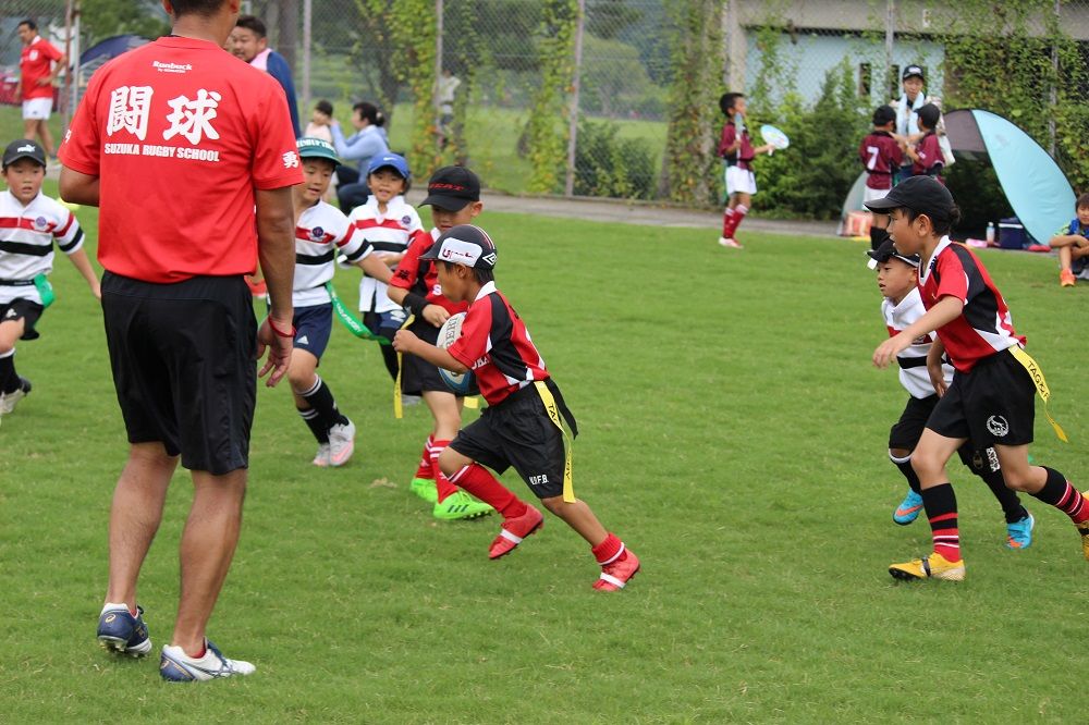 8月25日鈴鹿RS夏休み明けの通常練習この日は5名のキッズが体験に来てくれました。ラグビー楽しかったかな?またいつでも来てください。さて、通常練習。青い空、白い雲、緑の天然芝。残暑厳しい暑さにはなりましたが、最高の環境でいい練習を行う事が出来ました。整備が行き届いた天然芝グラウンドを提供して頂いてるHondaHEATさんにはほんと感謝です。感謝を込めて全員でグラウンドに挨拶です。練習前のハイタッチです。全員でウォーミングアップです。素振りです。オープニングゲームは…アイスブレイクの手つなぎ鬼ごっこです。グレード別練習スタートです。さぁ夏休みもあと1週間。最終日はラグビーで締めくくり。9月1日もHALをお借りして通常練習です。