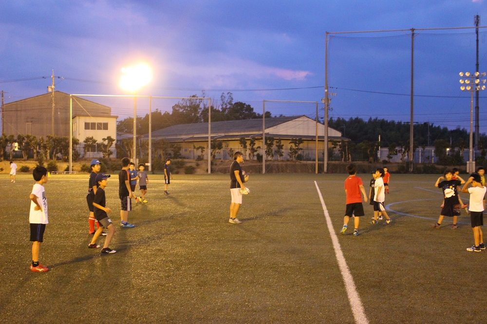 7月31日水曜自主練習8月2日金曜自主練習まとめてどどんと。平日自主練習は夏休みも可能な限り実施していきます。水曜小学1年~中学3年までが一緒にやってます。金曜小学生の自主練習とチームみえジュニアU15のナイター練習