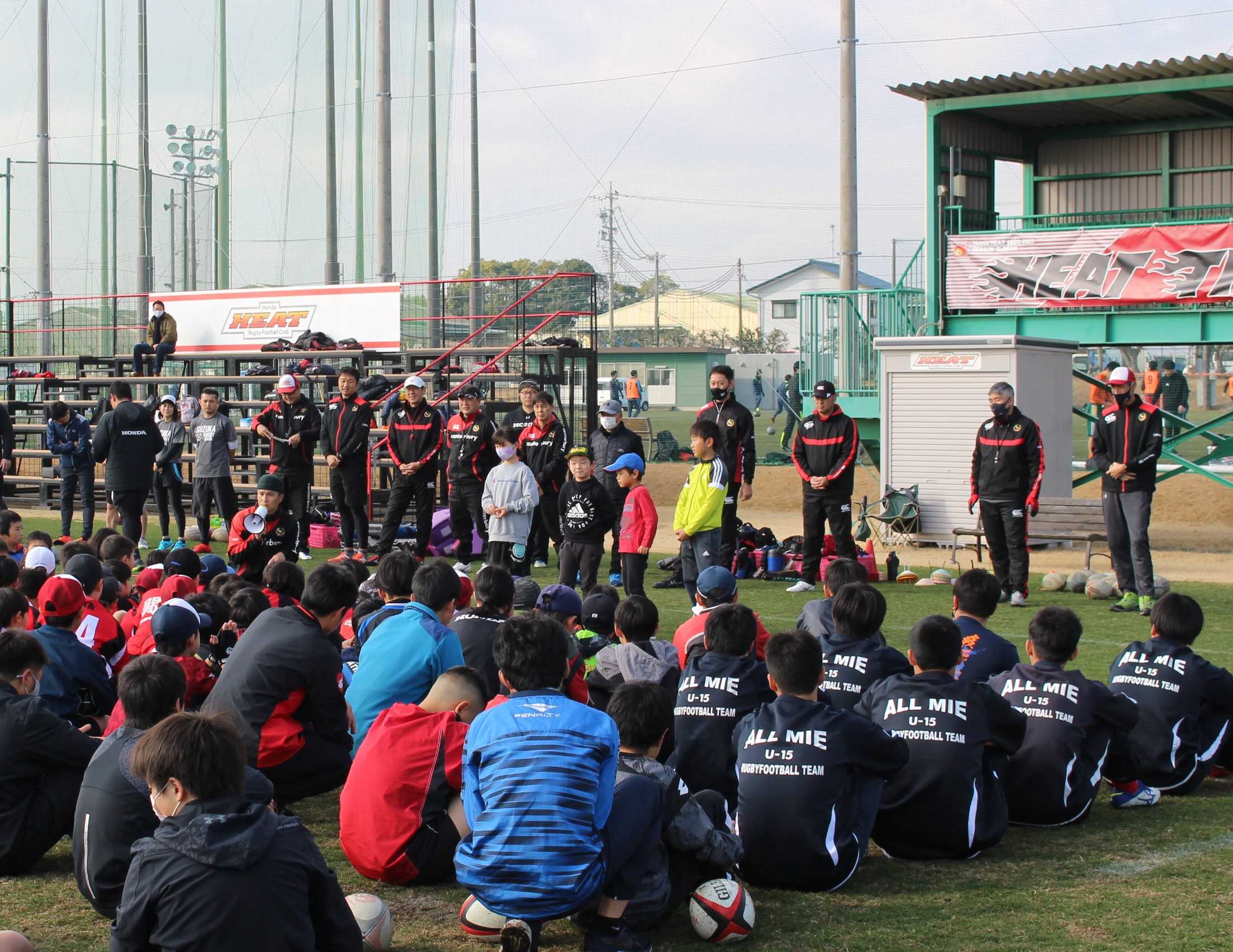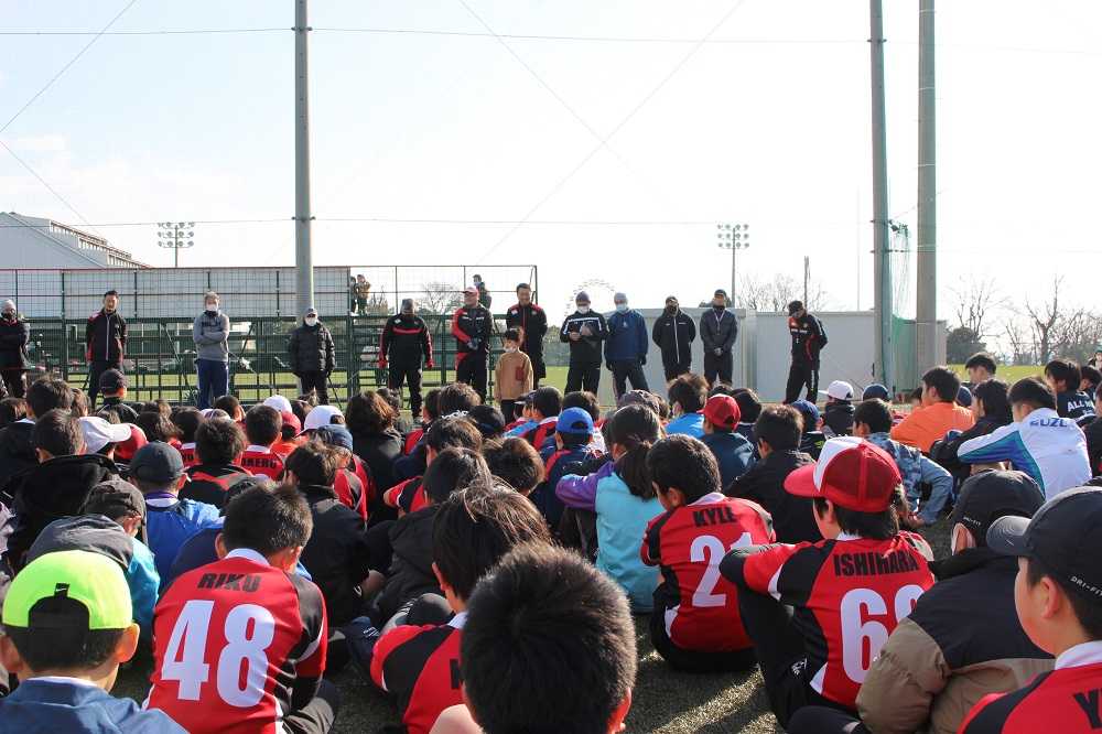 1月31日タラレバを言っても仕方ありませんが…コロナがまん延してなかったら… 第3波が来てなかったら…この日高学年の子供たちは日産スタジアムの大舞台に立っていました。でもでも。コントロール出来ないことや、「無い事」に対してネガティブになっても仕方ない。ラグビーが出来る。そんなこともままならない地域がたくさんある中、鈴鹿RSはこうして仲間たちと共にラグビーが出来る。「有る事」への感謝と喜び。決勝大会をなんとか開催しようと必死で動いてくれている人たちへの敬意。色々な想いが詰まった31日の練習でしたね(^_^)さて練習の模様です。第一弾として、集合からグレード練習前までをお届けします。体験に幼児キッズが来てくれました(^^)v年中さんいきなりこの人数を前に緊張したと思いますが…臆することなく前に立てただけでもたいしたもんです(^^)自己紹介はSjTコーチのサポートで。グラウンドに感謝を込めて。中学生と幼児はペアでウォーミングアップ。伝える力。聞く力。オープニングゲーム。いつも通りのアイスブレイクで練習スタートです(^^♪捕ったどー!グレード別練習は第2弾でお届けします(^^)/