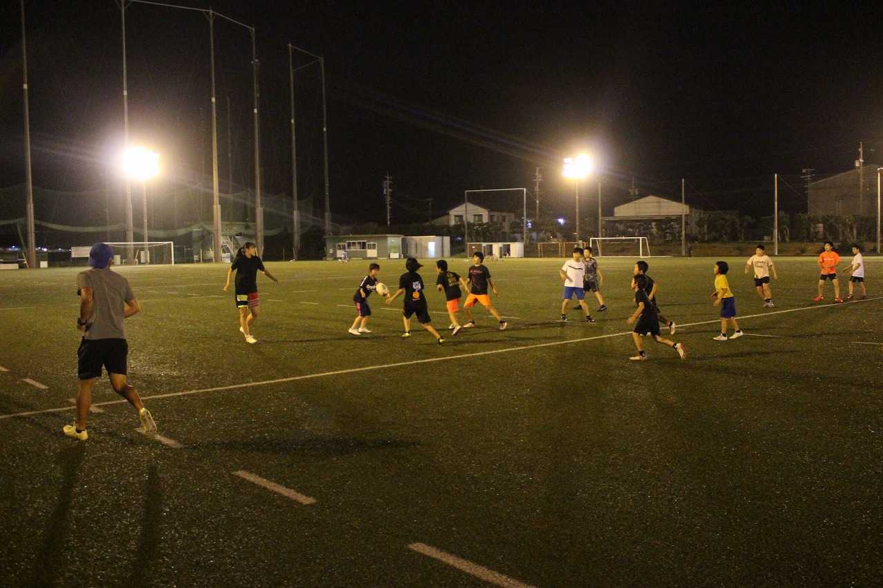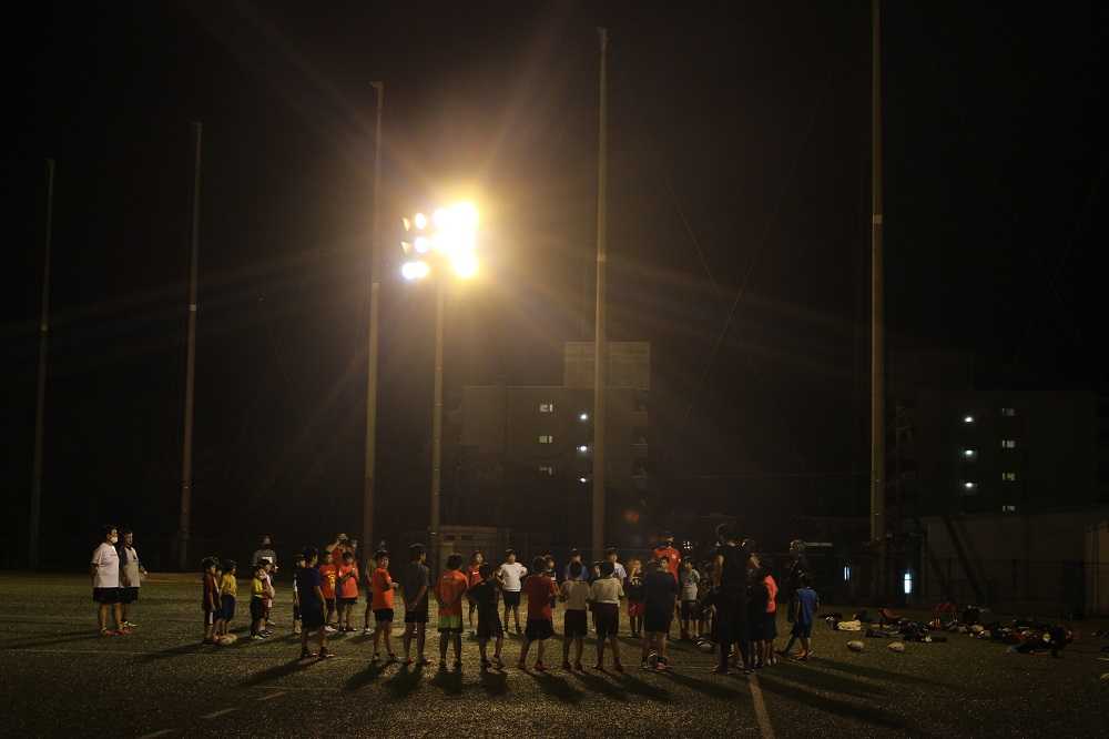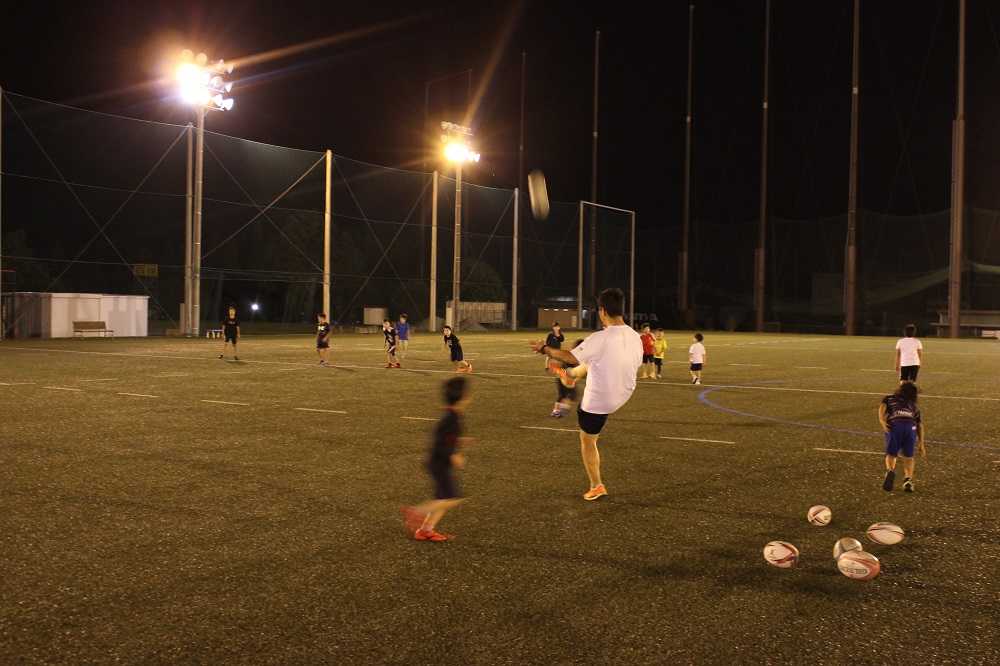 10月8日金曜の自主練習とチームみえジュニアU-15のナイター練習賑やかな金曜の夜が戻って来ました。小学1年生から中学3年生までが同じグラウンドでラグビーに親しむ。いい光景です(^^