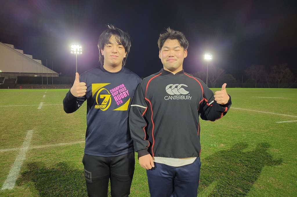 2月17日本日の中学生ナイター練習にOBの2人が顔をだしてくれました(^^御所実業高校 3年 StZ東海大甲府高校 3年 MyR高校ラグビーの3年間をやり切った二人です。3年間よく頑張った♪