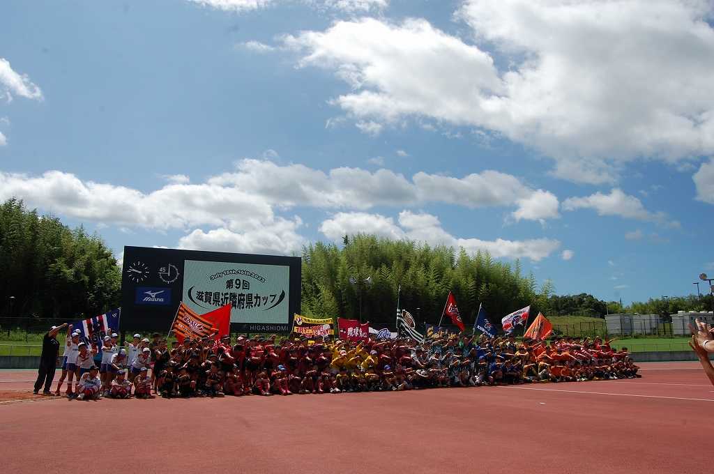 7月16日第9回滋賀県近隣府県カップ U-12毎年参加させて頂きいつも感服するのが、芝のコンディション。日本を代表するスタジアムに匹敵するといっても過言じゃありません。芝のコンディションを保つための技術など専門的な事は分かりませんが…しかし、このグラウンドの芝には毎年「心」を感じます。このような環境を小学生の子供たちへも解放し使用させて頂ける事に感謝です。本当にありがとうございましたm(_ _)m子供たちの奮闘の模様をお届けする前に…この日は、HrKコーチにチームレフリーとして帯同頂きました。子供たちを支えるコーチ皆さんのサポートがないと、どんな活動も行う事は出来ないんですね。HrKコーチには滋賀県協会の依頼もあり2試合担当頂きました。一日ありがとうございました。では、ここから子供たちの奮闘の模様です(^^13チームが参加した中、第3位。参加した全員が試合に出場してのこの結果に意味がある。よく頑張りました(^^)ではPhotoと共にどうぞ(^^)/