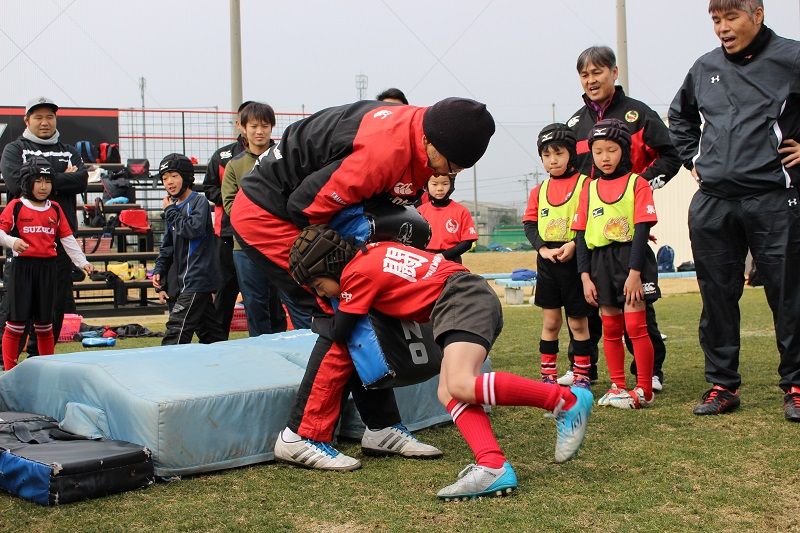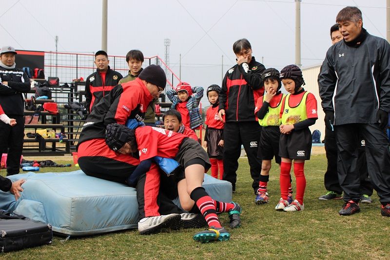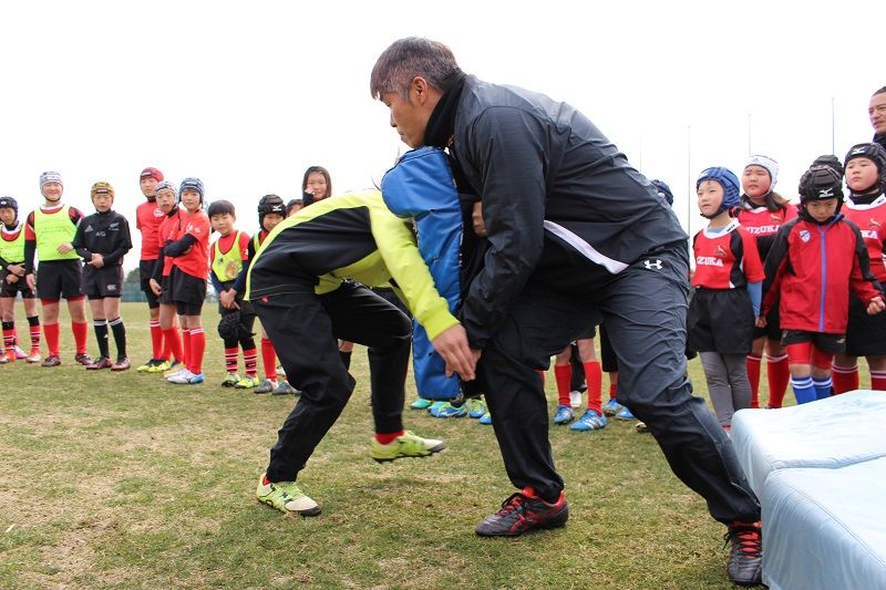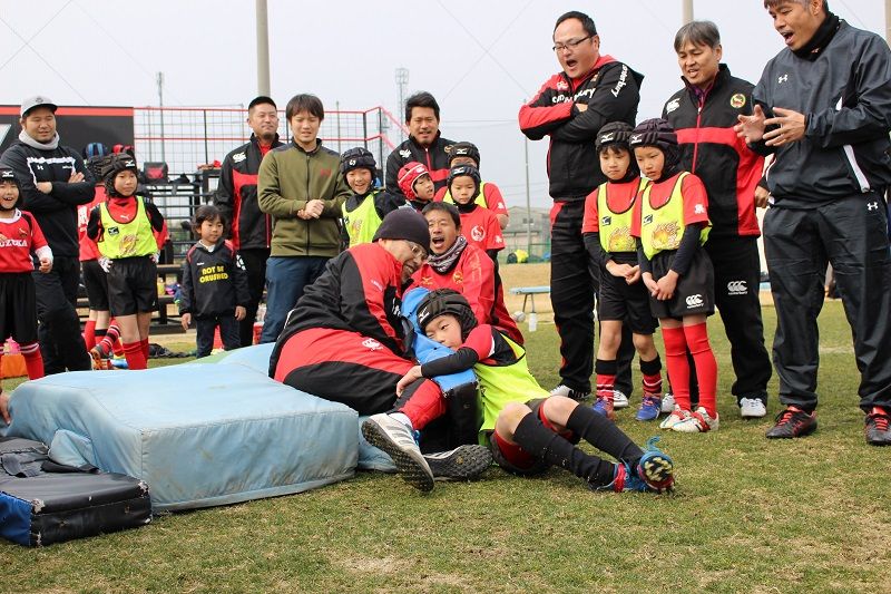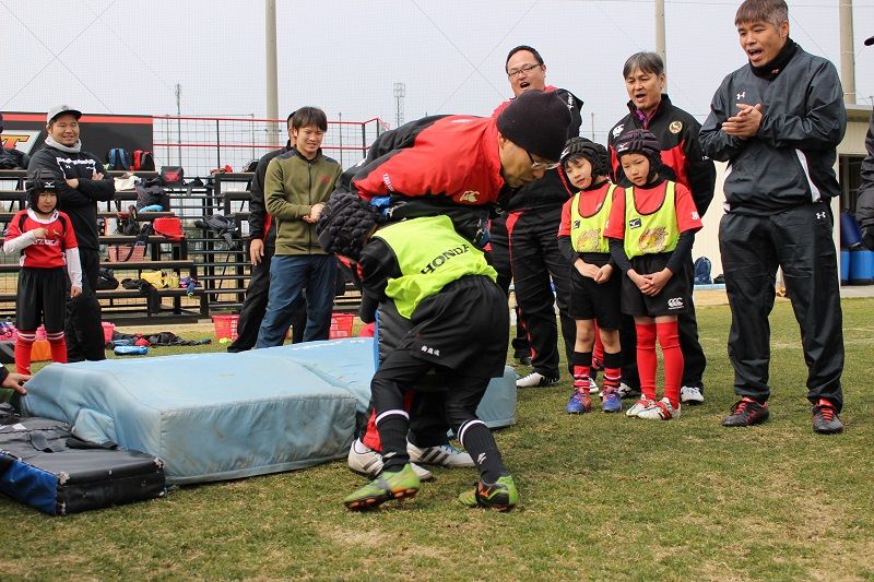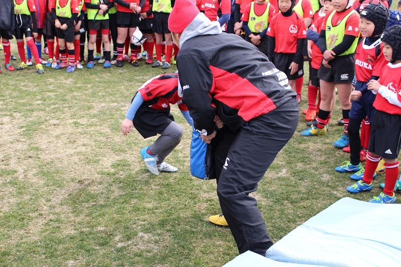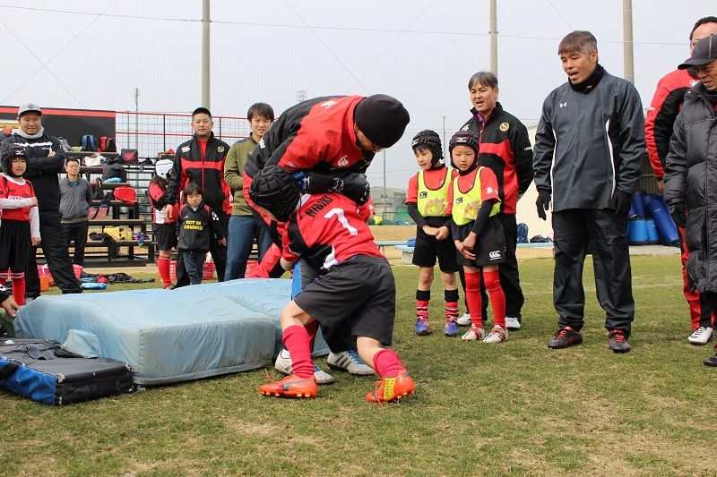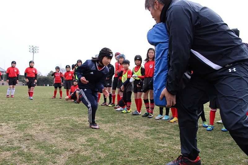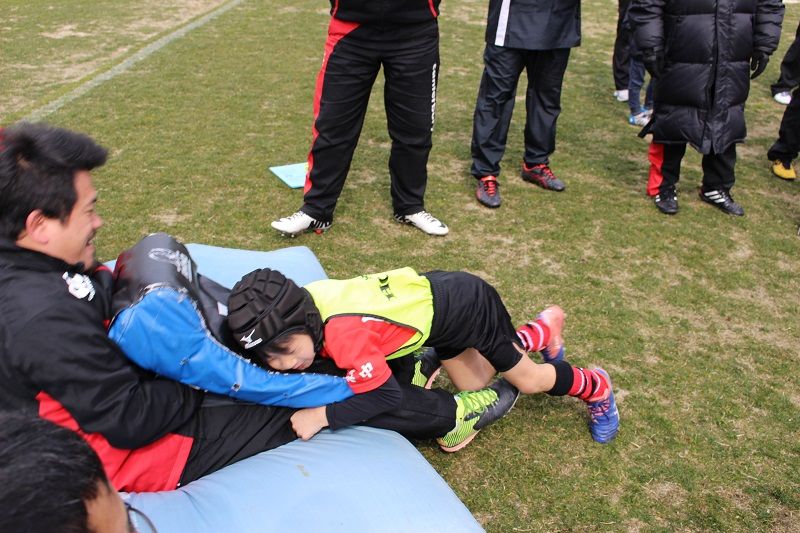 練習の最後は、小学生グレード一人ひとりの気持ちのこもったタックル。
