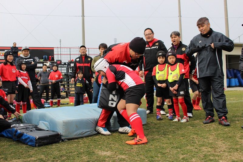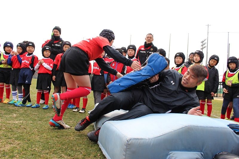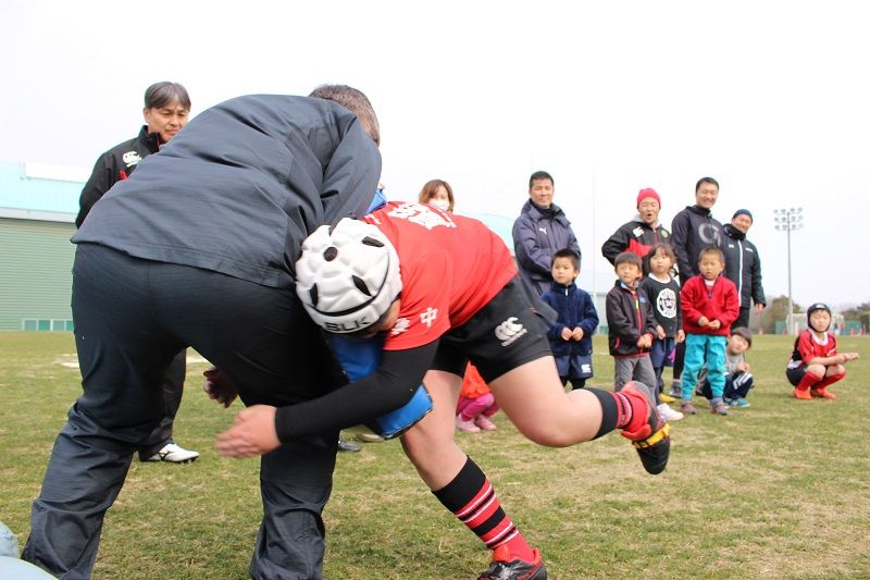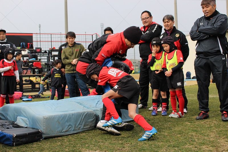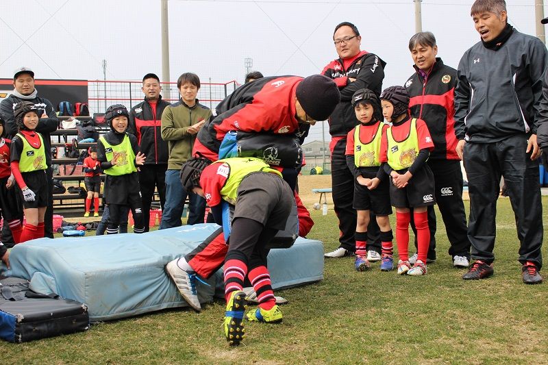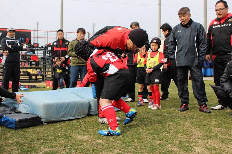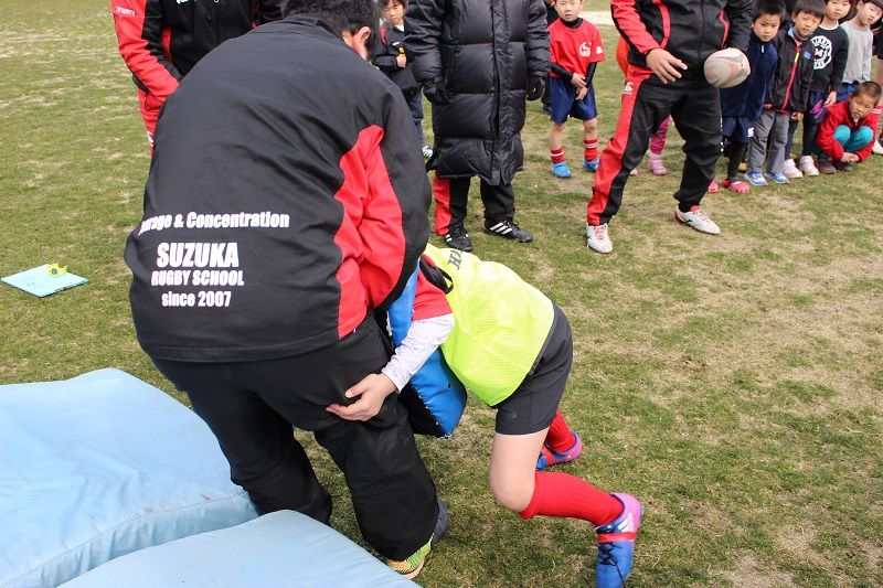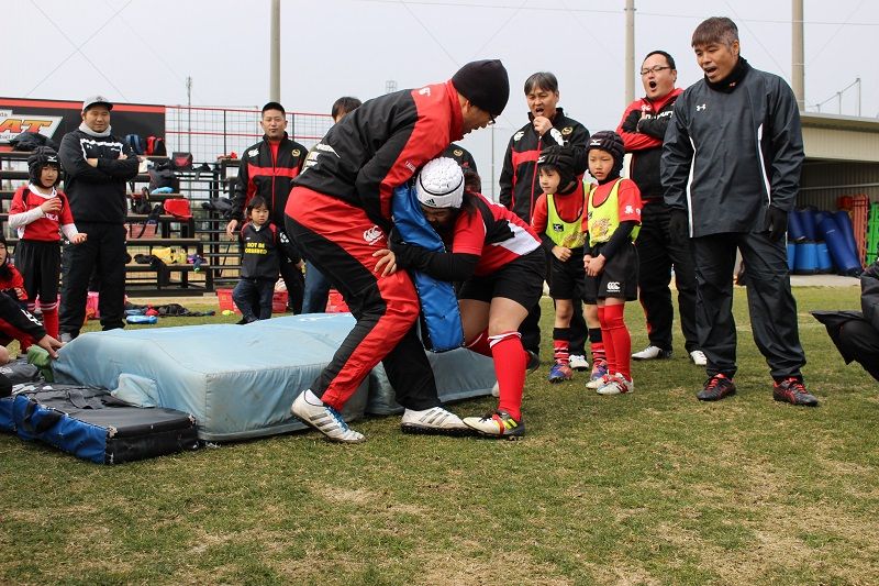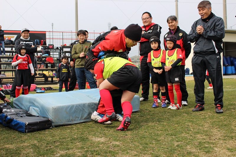 練習の最後は、小学生グレード一人ひとりの気持ちのこもったタックル。