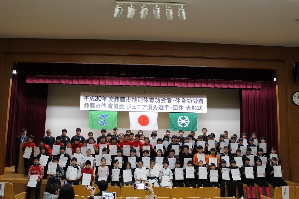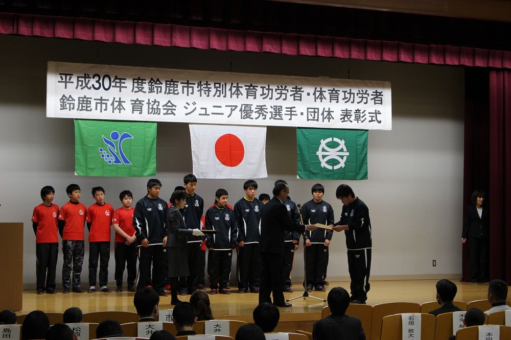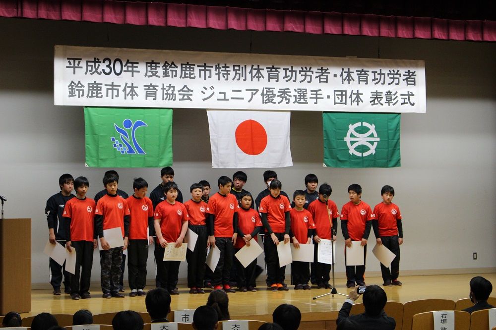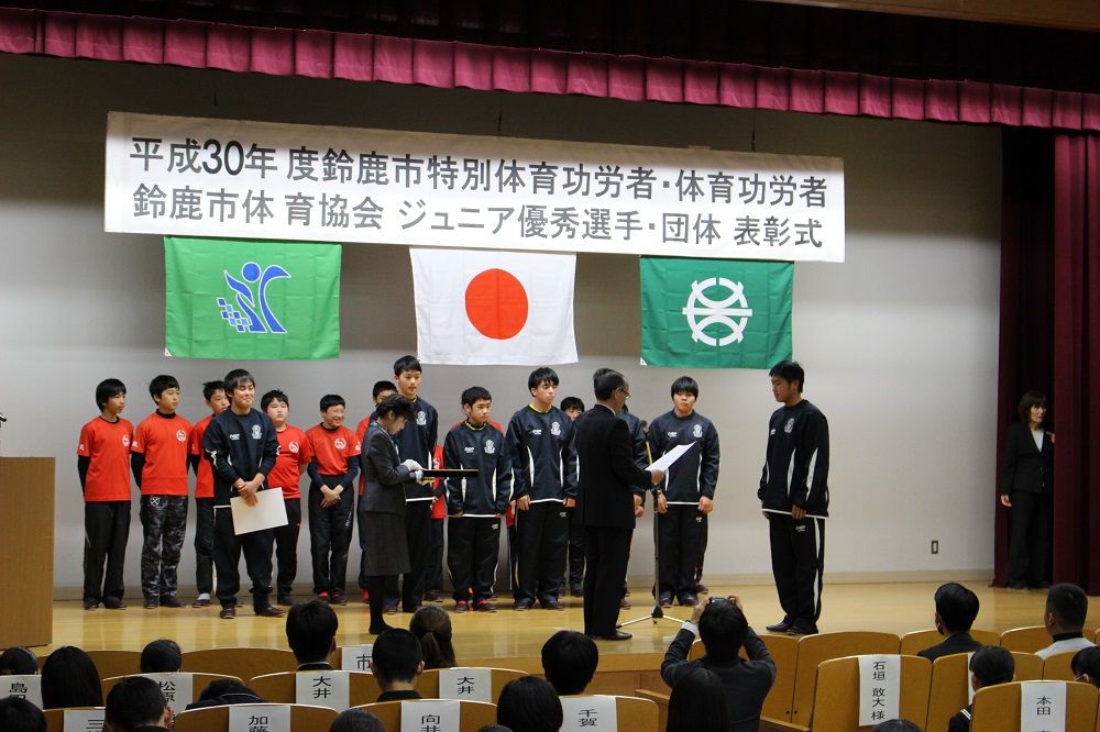 平成30年度鈴鹿市体育協会ジュニア優秀選手として表彰して頂きました。