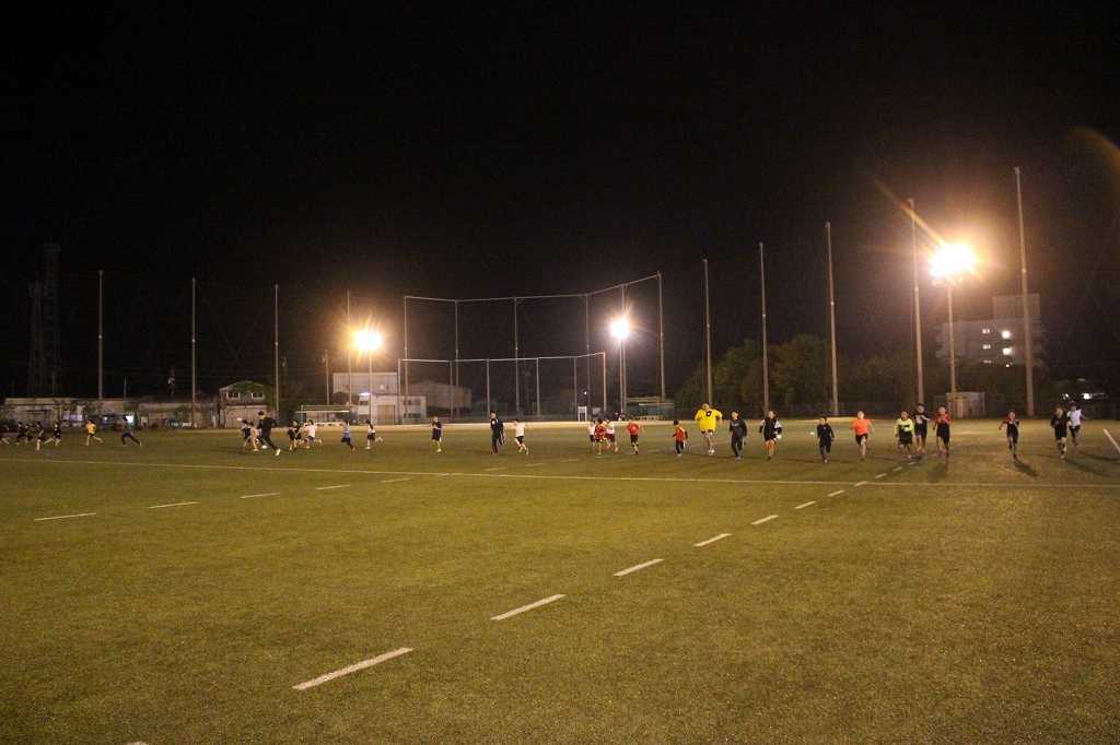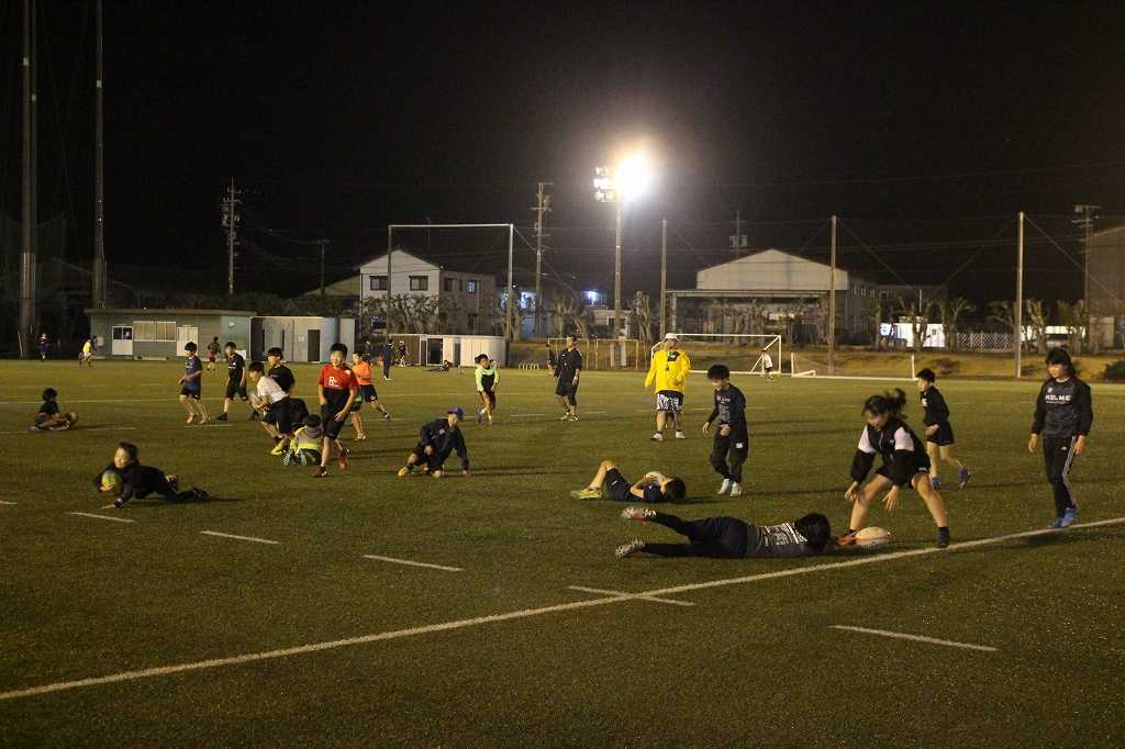 両面のグラウンドいっぱいにラグビーを愛する子供たち。