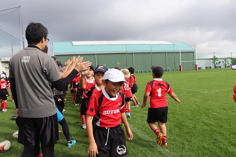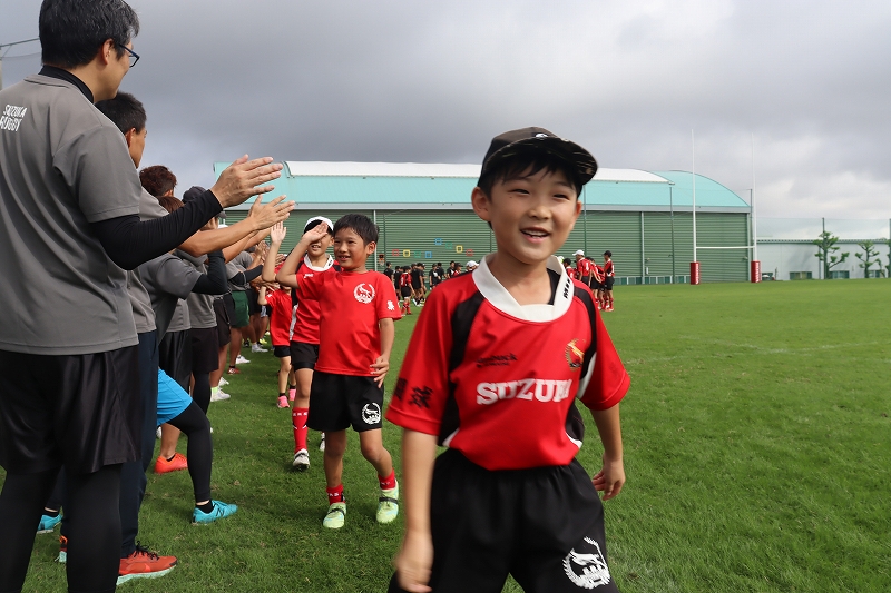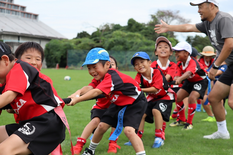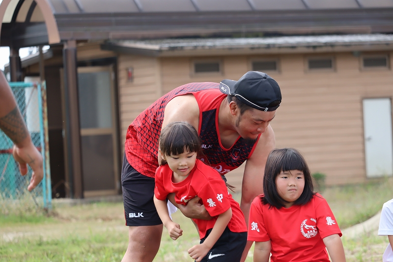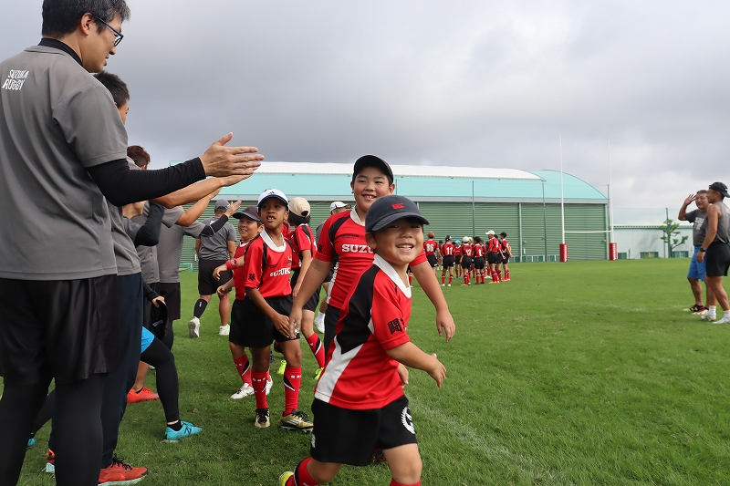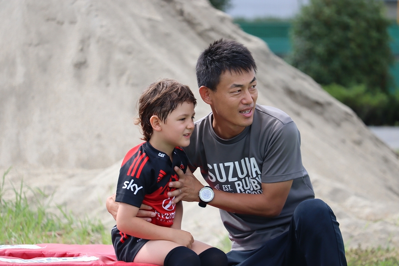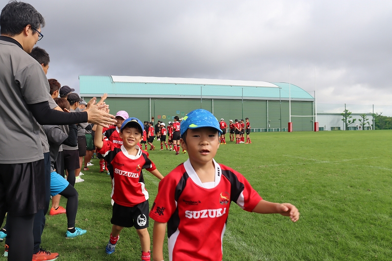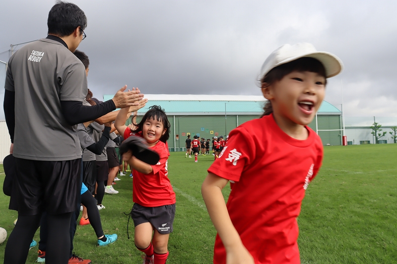 ラグビー指導にじゃんけん大会やサインなどなどのふれいあいに。