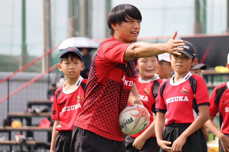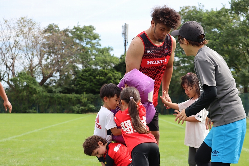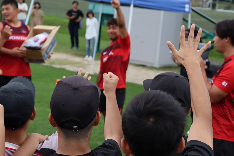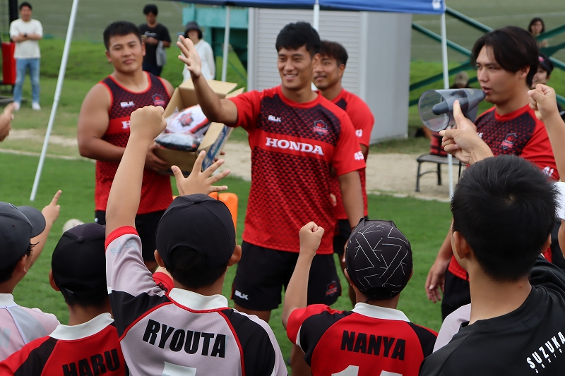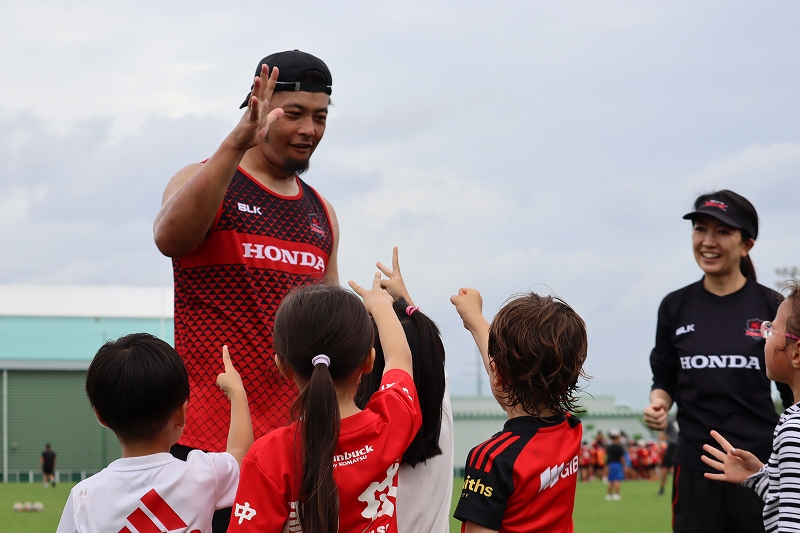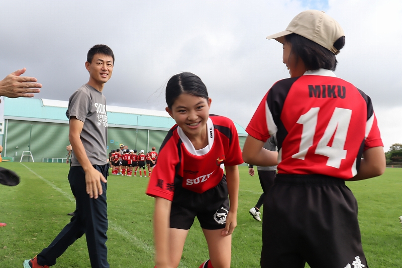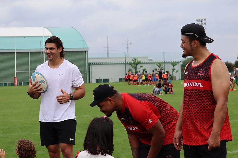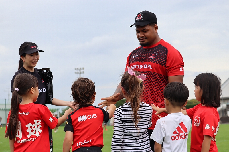 ラグビー指導にじゃんけん大会やサインなどなどのふれいあいに。