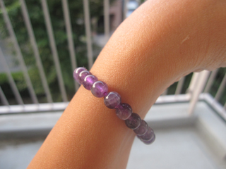 アメジストのブレスレットが届きました。天然石なのに送料込み100円です!6mm玉なので華奢な印象ですがかわいくて気に入りました。以前買った8mm玉のヘマタイトより内径も小さめかな?玉の透明度は低く、白い模様なども入っていますが傷や欠けなどは無く普段使いには充分です。アメジストはヒーリング、恋愛成就、直感力の向上などパワーストーンの中でも効果が高いそうです。お酒に悪酔いをしないという効果もあるらしいですよ。飲み会の時につけていくといいかも?ジュリエッタさんは毎週水曜更新で天然石のブレスレットを販売しています。いっぱい集めたいな^^↓【8/18更新】お試し100円アクセサリー※お一人様一個限り★天然石パワーストーンブレスレット ...価格:100円(税込、送料込)