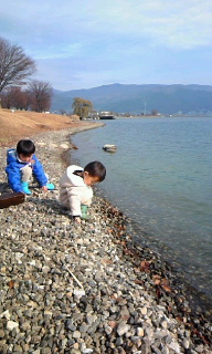 家でダラダラしていても悪循環なので、石投げに諏訪湖へ。