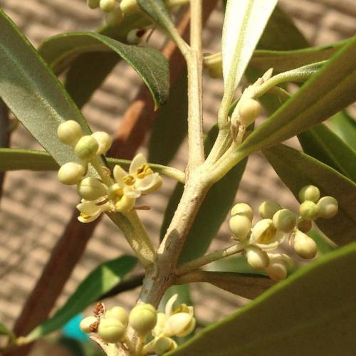5月なのに暑い日でした。もう半袖です。 昨年、苗木でもらったオリーブの木があります。鉢植えで育てています。そのオリーブに花が咲きました。白くて小さくてかわいい花です~!庭に植えたいけど考え中です。もう1本あれば実もなるかなぁ?