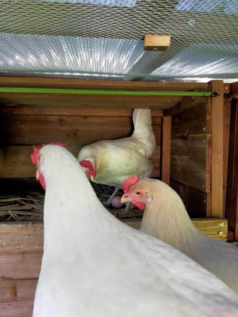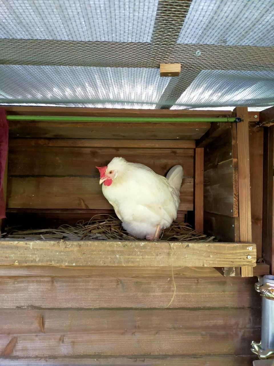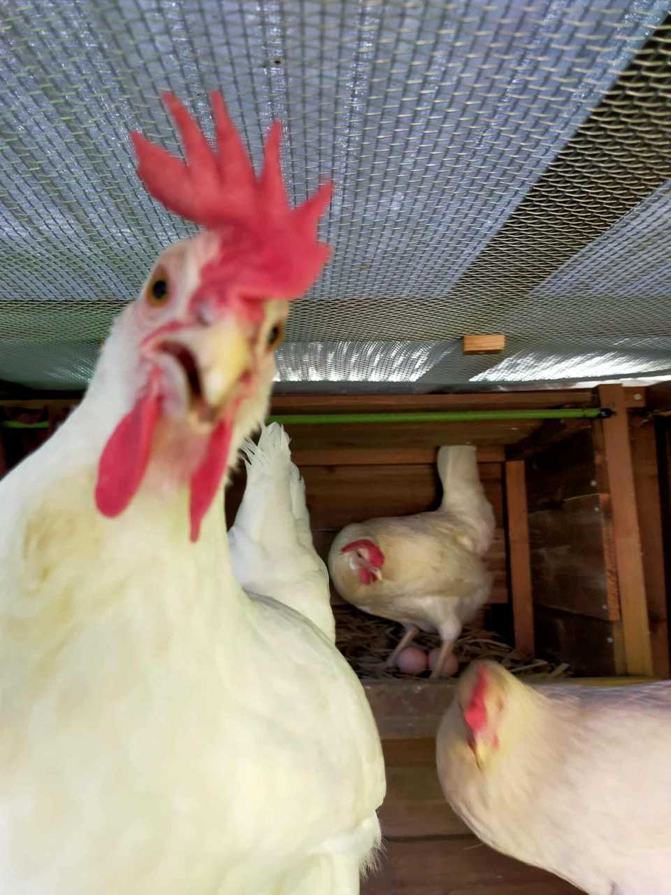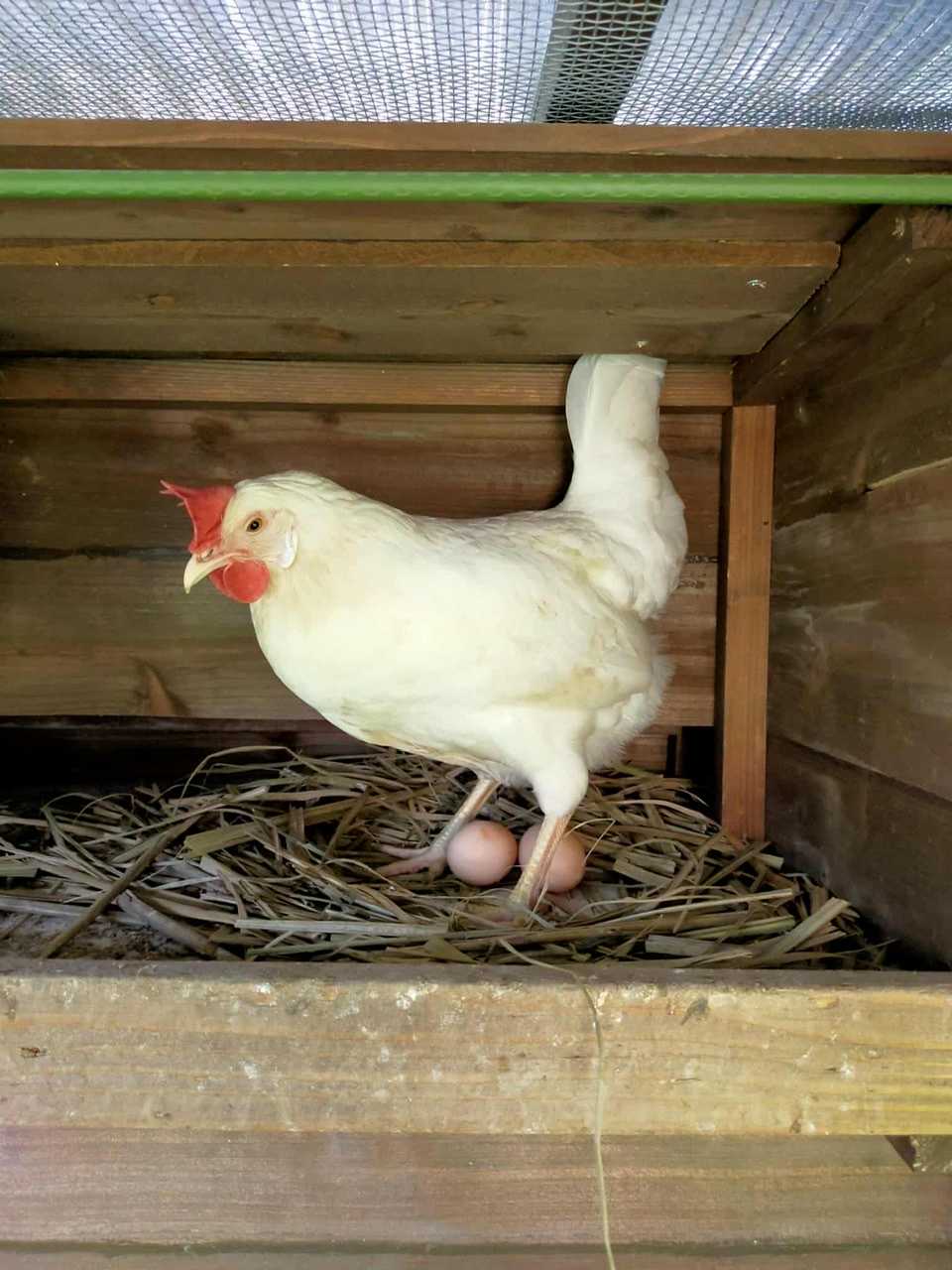 まずは、その白い鶏、さくらの産卵からご紹介。