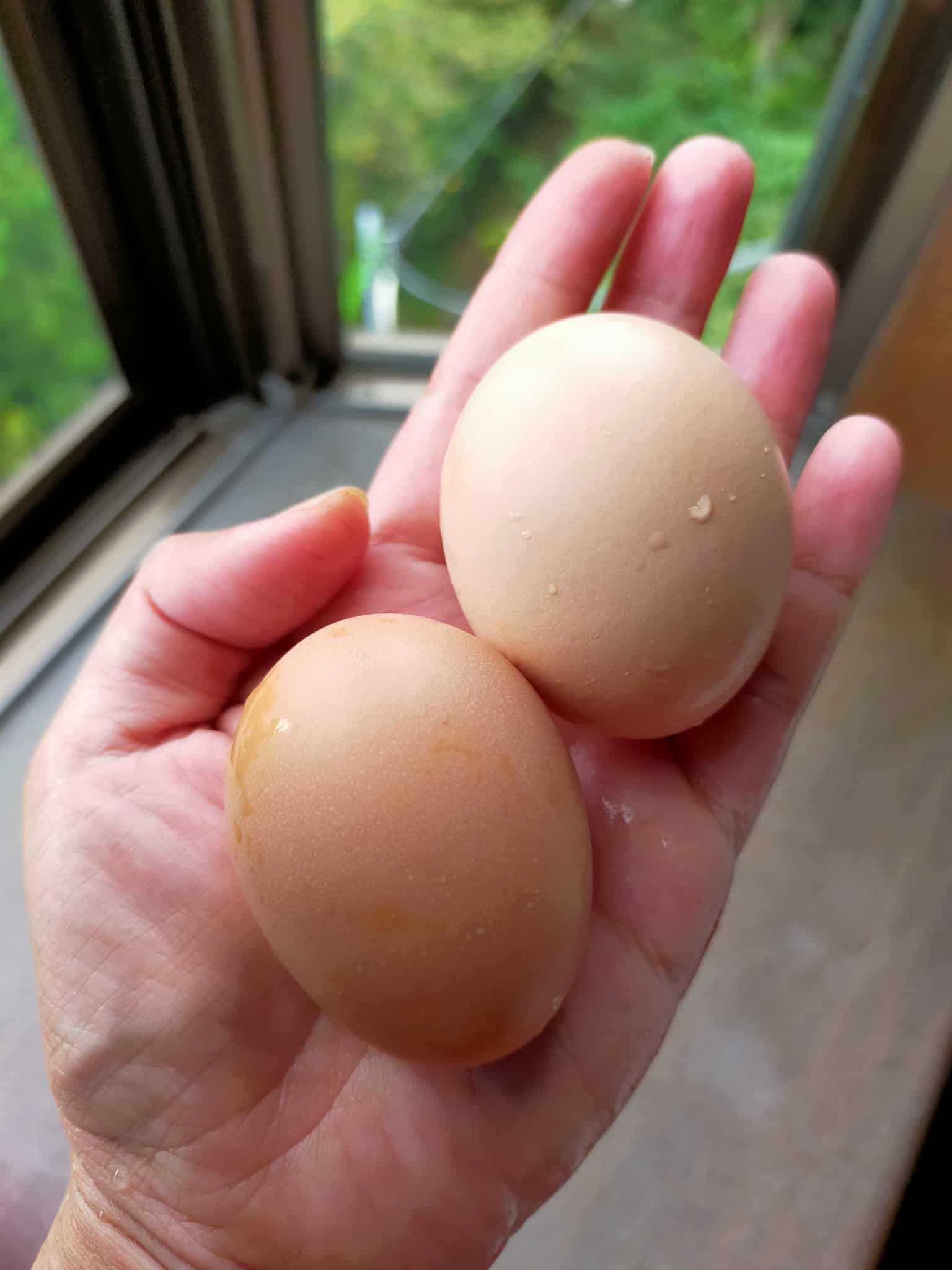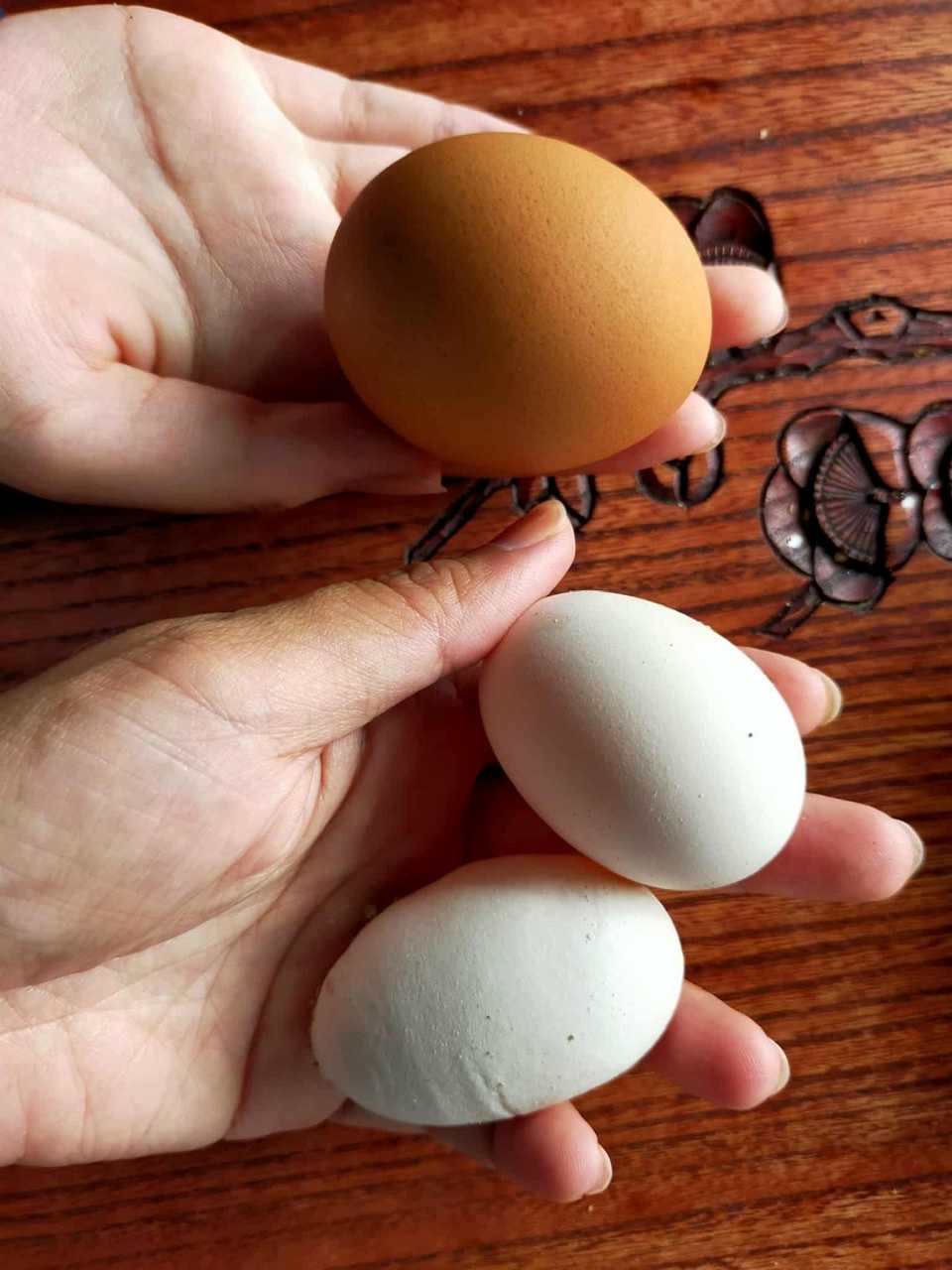 市販の卵と比較。(上の茶色いのは市販の卵)