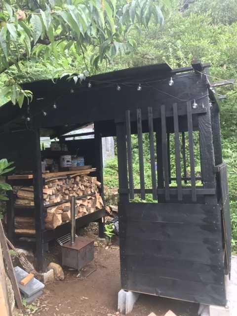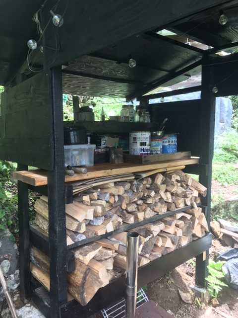 以前はタープを張って、その下を薪だな&作業場のようにして使っていました