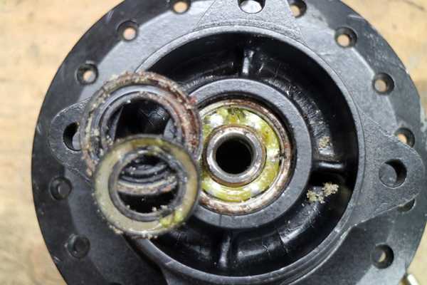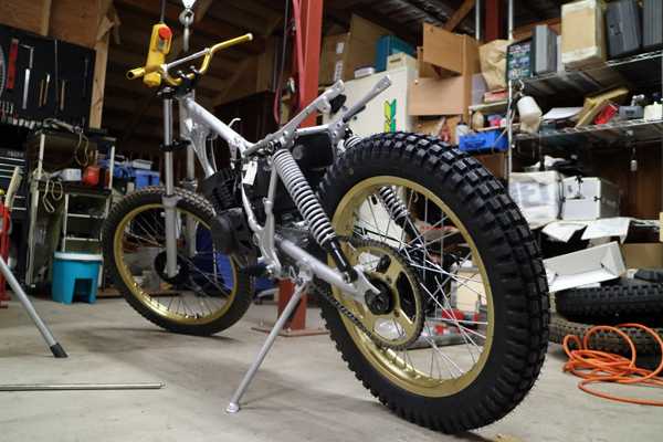 TY125のリアホイールにタイヤを組む前にブレーキパネルの塗装と新品シューの組み込みを行った。ブレーキパネルは汚れていたので、洗浄の後、ボンスターで磨いた。古い塗装を全て剥離するのが面倒だったので、表面を凸凹を均してブラック塗装及びクリヤーを吹いて仕上げた。シューはブレーキパネルをハブから外した際に剥がれてしまったので、ストックの新品と取り替える事にした。各所にグリスを塗って組み上げる。テンションのバネも付属の新品にしたので気持ちが良い。次はフロントブレーキに掛かる。ハブのベアリングはリアと同じく指を突っ込んで回してみると少しゴリゴリ感があったので、これも両側新品に交換した。フロントハブはプーラーが掛けやすく簡単にベアリングを抜く事ができた。圧入もベアリングを冷凍庫で冷やしていたので、すんなり打ち込めた。リア同様、ブレーキパネルを塗装し、ブレーキシューを点検してみるとかなり摩耗が進んでいたので、こちらもストック品の新品に交換していてハッと気が付いた。このパネルにはスピードメーターギアが組み込まれていないのである。このTLR200用のフロントタイヤ付きのホイールの入手経緯を思い出してみると、TLM50/1号機のフロント用に購入したが、リアには200用のホイールが入らない事が判明したので、取り敢えず2号機に装着していた物だ。ヤフオクで買ってから、ハブからブレーキパネルを外した事は一度もないので、最初からメーターギアは無かったと思われる。トライアルを行う場合はメーターなどいらないので、メーターケーブルを外す事はよくある事だが、走行抵抗を少しでも軽減するために、ギアまで外すのは珍しい。が、無いものは仕方が無いので、新品を購入すべく、カスタムジャパンで調べてみたが、TLM50用もTLR200用も廃番となっていて入手不可であった。ネットで情報を探すと、どうやら5年以上も前に欠品となっているようだが、需要があるので誰かが1品物を復刻したようだ。検索してみるとその販売サイトが何とも怪しい。普通にヤフオクとかメルカリで売れば良いのに、何故か聞いたこともないような通販サイトで、PeyPey決裁のみとなっている。益々怪しいので、2号機にはメーターケーブルも付いていない事から、ここは無理をせず、ギア無しでそのまま組む事にした。走行には支障がないのでギアとケーブルは気長に探すとしよう。塗装前のフロントブレーキパネル塗装前のリアブレーキパネルリアブレーキパネル裏側経年劣化で剥離してしまったシュー新品のシューと塗装済みのフロントブレーキパネル中央にある筈のメーターギアが欠損したブレーキパネル