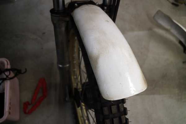 TLM50/2号機のフロントフェンダーはスタビライザー部と中央部に縦割れがあり、更に後部の泥よけ部分に欠損があるので、修理が必要である。FRPによる補修は強度に不安があるので、同じPP素材の不要のリアフェンダーを溶かし、溶着してみる事にした。欠損部分に鉄板のあて板を敷いて、フェンダーをバーナーで炙って溶かし、欠損部分にポタポタと垂らして行く。冷えて固まったので、グラインダーで形成しようと思い、ディスクを当てたらポロリと取れた。全く溶着出来ていなかった。フロントフェンダーは薄いので溶着は難しいようだ。欠損部分に薄いゴム板を張り付けようとも思ったが、恰好悪いので、投げ捨てた。次はTLR125Sに取り付けていたTLM50用のフロントフェンダーを修理してみる事にした。このフェンダーは以前、蒜山で次男の乗ったセローが激突して、スタビラライザ-部の両側に亀裂が入ったので、FRPフェンダーと取り替えた為に外していた物だ。亀裂部分を覆うようにアルミ板を切り出し、グラインダーで整形の後、リベット留めにして行く。両方作ったら強度も出て何とかなりそうだ。ホワイトで塗った塗装を剥がし、フロントタイヤの上に載せてみたら、前後共グニャグニャでまるでセンターが合っていない。ヒートガンで炙ってみても変形は直らない。特にこのフェンダーは薄いのか、劣化しているのかどうにもならないので投げ捨てた。次はストック品のTL50用?フェンダーを引っ張り出して、サポート金具を外してタイヤに乗せてみると、何とか使えそうだ。不要な穴をパテで埋めて塗装の下準備を行う。このフェンダーは古い物ではあるが、厚みもあり強度もありそうなので、曲がったりはしないので、大丈夫のようである。さて、どうなる事か。亀裂の入ったTLM50/2号機用フェンダー鉄板を当て溶着の準備に取り掛かるスタビライザー部に両側亀裂が入ったTLR125Sに取り付けていたフェンダー亀裂部をアルミ板とリベットで補修したフェンダー両側の補修が完成したフェンダーホワイト塗装を剥離中のフェンダーTL50?用フェンダーフロントタイヤに乗せてみたフェンダーパテ埋めが終わったフェンダー