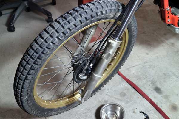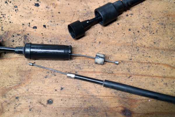 次はケーブル類の取り付けであるがここで問題発生。スロットルケーブルは2サイクルなので途中からキャブ側とオイルポンプ側の2本に分岐しているのだが、車体から外す時にバラバラになって3分割されてしまっていたので、オイルを注入後組立てようとキャブとオイルポンプのタイコをメインスロットルの筒の中に仕込んである分岐用の円筒形のパーツに引っ掛けようとするも、パーツが筒の中から出て来ない。ラジオペンチやピンセットを使おうにも、筒の中にピッタリ嵌まっているので掴みようが無い。ハンドル側のワイヤを押してみるも筒の出口で止まってしまう。どういう事?車体に付いていた時には確かに繋がっていたので、どうやったらこのパーツから2つのタイコが外れたのだろうか?分からない。SMをみるもその事についての記載もない。不思議だ。しかし手品でも無い限り絶対に2つのタイコは嵌まる筈である。いくら考えても分からないので、ケーブルを手に持って振ってみたら、筒の中からタイコを止めるパーツが抜け出て来た。たったこれだけの事に悩みに悩んでいたのがバカみたいだ。正に初歩中の初歩だ。想像するに、ケーブルを外した時に筒の蓋が外れ筒からパーツが抜け出て、2つのタイコが外れケーブルが3分割されたが、あちこちに持ち歩いている内にパーツが筒の中に戻ってしまったのだろう。恥ずかしくてブログに書くような事ではないが、これを教訓として記して置く。外したケーブル類はカシメ部分の錆をサンドブラストで除去して赤サビ転換剤を塗布の上、封筒をジョウゴ状に巻いて吊し、チューブの中にオイルを注入し一晩置いた。これで動きは良くなるであろう。次はアルミ製のレバーとハンドルフォルダーの傷をグラインダーで削って表面を整えブラック塗装を施そうと、ピボットボルトを抜いてみたら、クラッチ側のボルトが細い普通のボルトが入れてあった。よく見てみると、ボルト穴にスペーサーを打ち込んであった。ボルトを無くしたので応急処置を行ったのであろうが、レバーがガタついている。このままでも使えない事はないが、ガタつきが気になるので元に戻す事にして、スペーサー抜こうとして径に合う鉄棒を突っ込みハンマーで叩くがビクともしない。スペーサーが鉄製なので酷いサビでアルミに張りついているようだ。仕方が無いので精密ドライバーを使ってスペーサーの端を少しずつ折り曲げては鉄棒で叩きを何回も繰り返しやっと錆びたスペーサーを抜く事が出来たが、この穴に嵌まるピボットボルトは段付きの特殊ボルトなので、ホームセンターなどには売っていない。純正品を検索してみたら、無情にも廃番だった。何処かに代用品はないかと探してみたら、XL125Sのレバーが出て来た。ボルトを抜いて嵌め込んでみると径は同じだったが、スペーサーを入れるためにフォルダー側雌ネジをドリルで削ってしまっているのでナットでの締め付けのみとなるが、ガタつきは止まったのでこのボルトを使用する事にした。次は欠品のハンドルグリップをAliExpressで2ヶセット375円で買ってあったので、取り付けようとするが、このグリップは色の違うゴムのインナーが入っており、安いが二重構造になっている優れ物だ。内径が同じように見えたが、ハンドルに挿し込んでみるとスロットルパイプが入る右側用が少し大きくなっていた。しかし、スロットルパイプを入れるには少し小さいように見えたが入れてみる。かなりキツかったが何とか差し込めたので無駄にならなくて良かった。それも束の間、アクセルワイヤを取り付けてみるも、アクセルが戻らない。何処かが干渉しているようなので調べてみると、グリップのインナーが少し長くグリップからはみ出しているので、その部分がフォルダに接触している事が分かったのでナイフで切り取る。これでスロットルは正常に戻るようになった。アクセルケーブルの調整後、アクセルグリップの捻りに応じ、キャブとオイルポンプの同調が出来ている事が確認できたので、OKである。筒の中から出て来た円筒形のワイヤを引っ掛けるパーツ錆びたワイヤのカシメ部分ワイヤを吊してオイルを注入する簡易装置曲がりを修正し傷を削って塗装を施したレバーとホルダXL125S用のレバー取り付けピボットボルトAliExpressで購入したハンドルグリップ