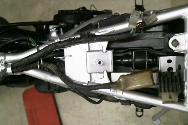 TLM50のメインハーネスは予備を含めて2セットの手持ちがあり、どちらも損傷箇所は無いので、2号機に付いていた物を使用する事にした。シンナーを含ませたウエスで汚れを落とし、カプラーには接点活性剤を吹いて、車体に取り付ける。続いてストック品のハンドルスイッチを取り付けたが、中を開けてみると金具が錆びていたので、外してサンドブラスト後、赤サビ転換剤を塗って組立てる。しかし、ここで問題発生。TLR200とTLM50のハンドルスイッチは全く同じなので、配線も同じだと思い、ストック品は以前TLR200用を中古で購入していたのだが、よく見てみるとハンドルスイッチのカプラ付近から分岐する配線の色と数が違うのである。スイッチの配置が同じなのに配線が違う事が理解出来ないが、現実に配線が異なっているのだ。TLR200用の分岐配線は青/白が1本に対し、TLM50用は緑/白と緑の2本である。両車の配線図を調べてみたら、何れもレギュレーターに接続するようになっているので、推測ではあるが、TLM用は緑/白はレギュレーター、緑はアース。TLR用は青/白がレギュレーターでアースは何処かで取れているので不要?心配なら余ったメインハーネスのギボシをアースに落とせば良いと思われる。カプラの配線は全く同じなので、その他のスイッチ類は問題ないだろう。車種が違えば同じ物でも小さな所で仕様が異なる事もあるので、購入する場合は車種を合わせた方が確実である事を今更ながら痛感した。車体に取り付けたメインハーネスTLR200用のハンドルスイッチ金具のが錆びていたスイッチ内部ハンドルスイッチのカプラ配線の脇から分岐するレギュレーター入力の青/白配線
