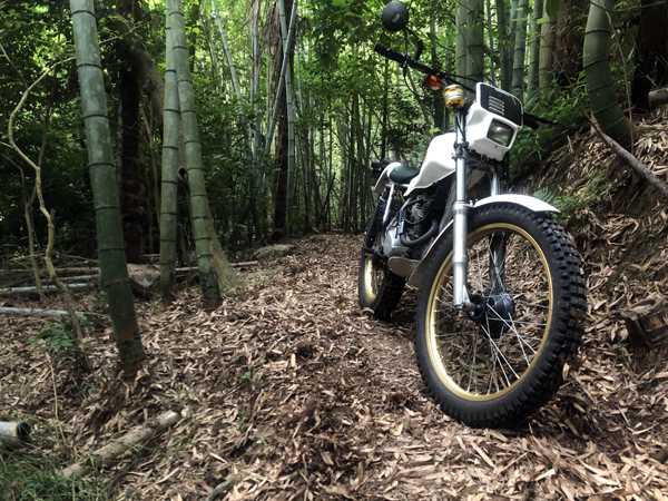 昨日、幻の日吉神社に行く事が出来なかった件とリアサスのスプリングが欠落した件を尾崎氏に報告して、今日、再度探しに行く事を話したら、神社へ案内すると言い出したので、8月16日午前6時に八浜のセブンで待ち合わせをする事となった。また過激なオフロードを走るかも知れないので、今日はセローはお休みで、TLR200の出動となった。5時30分キック3発で目覚めたTLRは快調そのものだ。早朝の国道を疾走する。やはり125ccとはパワーが違う。セローにも引けを取らないペースで走る事ができるが、シートが薄いので長距離ツーリングは無理だ。尾崎氏の話によると、昨日は3人で日吉神社へ行ってボランティア作業を行ったそうである。神社へ行くルートは、昨日走行した3ルートの他に十禅寺山の山頂から下るルートと元川から登るルートがあるとの事で、昨日は十禅寺山登山道の手前にクルマを1台駐めて、尾崎氏の軽四に乗り換え十禅寺山の山頂まで行き、そこから徒歩で神社まで下ったそうである。やはりグレーのワゴン車は尾崎氏一行のクルマだったようだ。電話してみればよかったが、日吉神社付近は圏外との事だ。セブンを出発した軽四とTLRは昨日リアサスの欠落が発覚した下池の土手にTLRを駐車し、尾崎氏の軽四に乗り込む。スプリング捜索に必要かもと思い、乗せて来たという草刈り機の刃が丁度顔の辺りに来る乗車姿勢で十禅寺山を目指す。十禅寺山は昨日、右に折れた道を左に入って行く事になる。コンクリート舗装はしてあるものの、幅員が軽四ですら一杯である。いきなり登り坂なので、エアコンを切ってフルアクセルで登ると今度は最大の難所、下りの先で急勾配の坂道が待ち受ける。勢いをつけるべく下り坂をアクセルを踏みながら加速して、フルアクセルで急坂を登る。最後はエンジンが悲鳴を上げそうになったが何とかクリア。ここの下りでアクセルを踏めなかったら登れないそうである。オフロードとなった道は尾根伝いに灌木の間を縫って延びている。回りにはイノシシの捕獲檻があちこちに設置されている頼もしさだ。オフ車で来れば面白そうな道である。軈て十禅寺山の山頂に到着。展望が開け八浜の町から遠くに児島湖、藤田方面が見渡せる。ここからは急な斜面を100mほど下って行くと元川への分岐があり、幻の日吉神社の社殿の屋根が見えて来る。東参道入口には立派な石鳥居と大きな石灯籠があり、この参道を下れば昨日雑草に行く手を阻まれ断念した道に繋がるそうである。とうとう辿り着いた幻の日吉神社は本殿、拝殿、幣殿の他に釣殿まで備えた立派な神社で、表参道の鳥居二基や、手水舎、玉垣などが全て整備されている。標高200mのこの山奥に一体どうやって建築資材を運んで来たのか?興味は尽きない。神社の社殿もさる事ながら、神社の回りは太い孟宗竹の林になっており、竹に囲まれた神社の様相を呈している。少し切って整備しようと言う様なレベルでは無い。凄いのひと言だ。正に圧巻だ。表参道を下って行くと、鳥居脇に大きな杉があり、その杉の地上2m程の又から大きな孟宗竹が2本生えている。どうやったらこんな事になるのだろう。不思議だ。表参道の竹林を下って行けば、昨日断念した廃屋があった道に通じ、距離的にはこのルートが一番近いようだ。イノシシが掘った竹の根の痕跡があちこちに残る道を通ってクルマの場所まで帰る途中、小さな墓地があった。花が手向けてあったので、盆に家族の者が参りに来たのだろう。山頂で休憩の後、クルマを回転させてTLRを駐めてある土手まで引き返し、スプリングの探索に掛かる。ここからは一人でTLRを駆って探しに行く予定だったが、歩いて探した方が見つけやすいと思い、軽四で行ける所まで行って後は徒歩で探す事にした。オフロードの狭い道は2WDの軽四では荷が重く、前輪で石を跳ね上げる音が凄い。ボディーは両側から迫った灌木に擦れてガチャガチャ五月蝿い。それでも何とかガレ場の急坂の下まで来たので、ここで断念。この車高と2WDではまず無理だ。ここからはクルマを降りて徒歩でスプリングを探しながら登って行く。途中落木を片付けながら、笹のジャングルを潜り、倒木を避けながらの行軍である。やっと昨日引き返した地点まで登って来たが、スプリングは見当たらない。折角苦労してここまで来たのに何の手がかりも、収穫もない。落胆し、傷心のまま山を下る。帰り道も捜索を続行したが、やはりスプリングは見つからなかったので、このオフロードに入る前に欠落した可能性が高い。ここでギブアップだ。TLR200用のリアサスは既に廃番となっており、海外製の互換品も今では無くなっているので、今後の入手は中古品を探すしか手立てがないが、こうなったらゆっくり方策を考える事とする。蒜山・大山車中泊ツーリングは急遽TLRに登板して貰う事にしよう。盆の2日間楽しませて貰った尾崎氏に感謝だ。十禅寺山山頂からの眺望(朝靄が掛かり見通しが悪い)十禅寺山山頂から日吉