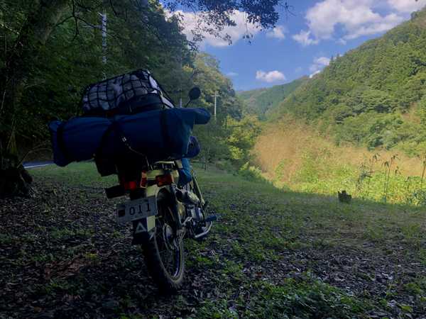 9月3日~4日に掛けて中津渓谷上流の天空の林道キャンプツーリングを計画していた。天空の林道は四国にあるので、カブ90とクロスカブさんの110をフレンディーに乗せて瀬戸大橋を渡る予定であった。前日の夜に天気予報を確認したら仁淀川町の天気が回復し、雨が無くなっていたので、決行と判断してクロスカブさんにLINEを入れて寝た。翌朝、出発準備をしていると、妻が四国は雨になっているよ!と無情なお知らせを告げに来た。ぬぁに~。そんな筈はない。昨夜確認した時には確かに雨マークは消えていたのだ。女子供の言う事は俄に信じがたいので、自分のスマホで確認したら、今日の午後から明日1日ずう~と雨マークになり明日は午後から大雨になっているではないか。これでは流石にキャンプは厳しいし、カブにも乗れない。どう考えても無理だ。クロスカブさんに急いで中止を連絡をしようと、電話を掛けたが既に出発していて、こちらに向かっているらしく、応答がない。折角2時間も走って到着したわ、中止です。は、あまりにも可哀想なので、涼しい所で雨がさほど降らない場所を探してみたら、庄原市の道後山辺りが明日に掛けて比較的好天である。午後3時頃雷雨が少しあるようだが、その後は雨は降らないようだ。行き先の変更案を用意して待っていたら、クロスカブさんがやって来た。実はこうこうしかじかと変更案を伝えると、二つ返事でOKが出たので、急遽、ツーリングキャンプは道後山に決定。クロスカブをフレンディーに積み込んで、出発である。ショートカットでR180を新見に向けてクルマを走らす。クロスカブさんは足守から中庄へ抜ける何時もの近道を通ったと言うが、ショートカットの最中、その近道とやらを聞いてみたら、何と、足守から吉備路を通り、倉敷の近くから中庄に出たという。そりゃあんた近道どころか大回りですやん。近道をクルマの中で説明しても理解できないと思うので、いつかじっくり説明する事にした。新見からR182に分岐して、東城方面に向けて走ると、道の駅鯉が窪があったので、昼食とする。レストランには名産の千屋牛のメニューがずらりと並んでいたので、クロスカブさんは一番高価い千屋牛御膳を券売機で買おうとするが発券されない。よく見てみると、✖️マークが表示されている。今日は出来ないようなので、2人とも千屋牛丼を注文。流石千屋牛美味しゅうございました。東城の町から道後山へはR314で奥出雲方面に分岐、更にR183に分岐する。ワインディングの快走路を快調に走るが、後にはバイクを2台積載しているので、ブレーキが甘めになる事を考慮しながら、負荷を掛けすぎないように山に分け入って行く。道後山付近にキャンプ場と温泉がないかと探してみると、道後山キャンプ場とすずらん温泉が確認できた。すずらん温泉は数年前にディアベルさんとツーリング中、夕立に見舞われ、避難した温泉だ。道後山キャンプ場は、どのサイトを見ても料金が表示されていないので、最悪オートキャンプ場でも良いと思い行ってみる事にした。キャンプ場はすずらん温泉の丁度反対側で、道後山スキー場の更に奥にあるようだ。ここからは急坂の狭隘路になるので、エアコンを入れている事もありフレンディーのエンジンが唸りを上げる。スキー場に到着するとロッジの脇に道後山キャンプ場の小さな表示板があり道が続いている。スキー場の山の頂上辺りに、広い駐車場とトイレがあり、クルマが1台駐まっていた。奥の森にオフロードの進入路があり、倒れかけた看板にキャンプ場の文字が見えたのでここが道後山キャンプ場のようだ。オートキャンプ場どころか管理棟すらない。誰もいない林間の段差のあるサイトらしき場所にフレンディーを乗り入れる。こういう時は4WDが威力を発揮する。どうやらこのキャンプ場は無料のようなので、早速カブ2台を降ろし、物干し竿とビニールシートで雨よけのサイドタープを設営していたら、通り雨の小雨が降ってきた。タープの下で一服していると、カッパを羽織ったカップルが道後山登山にやって来た。雨は直ぐ止み、空を見上げると曇ってはいるが、雨が降りそうな雲はない。クロスカブさんは悪戦苦闘しながらテントを張っている。一段落したので、GPS25000の位置情報をONにして付近のオフロードを探してみる。道後山への登山道があったがその前に、キャンプ場の奥のオフロードを下って行くと、草苅がなされた広場で行き止まり、水道施設もあるのでここもキャンプ場だろう。広場はフラットで明るいので、ベースキャンプ地をここに移動する事にして、登山道へ向かう。細いオフロードはガレ場になっているが、何とか走れる。段差で下回りをヒットさせながらも進んで行くと、熊笹が両脇からせり出し、突っ込むとズボンがずぶ濡れになりそうなので、ここでストップ。引き返す事にした。次は、この山の頂上付近にある東屋へ行ってみるべく、茅の生い茂る進入路に突っ込む。この道は東屋で行