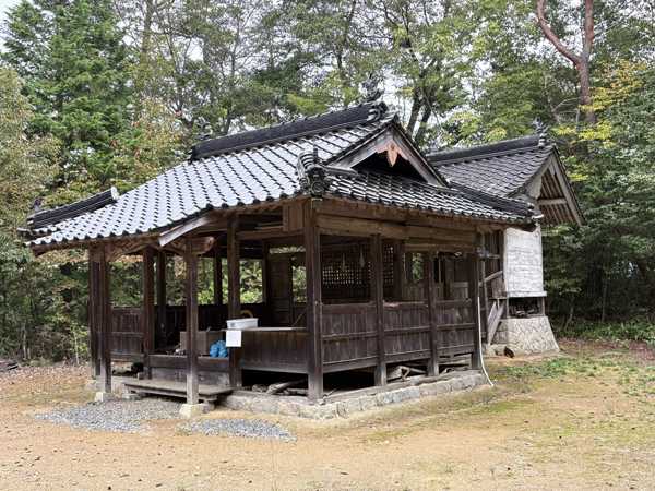 魔法神社社殿(拝殿にタヌキの置物が数体ある)
