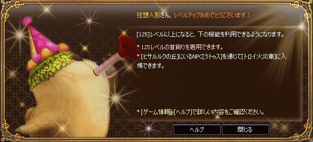 おはようございます、鎖の子です。起きちゃったので朝から更新タイム(。+・`ω・´)b前回日記というか愚痴というか叫びというかヒトコト更新しました、が!Lv126キタ━━d(*`・(エ)・´*)b━━!!そんでもって・・・Lv127キタ━━━━。゚+.ヽ(´∀`*)ノ ゚+.゚━━━━!!誕生日゚*。(*゚ェ゚ノノ゙☆パチパチパチはぴばに・・・間に合いまし・・・た!苦手なとろいとかいっぱいいったからね・゜・(PД`q。)・゜・やっと・・・やっと!!これでやっと・・・やっと・・・ビエエェェ。゚(。ノωヽ。)゚。ェェエエン!!!もう皆大好きだ(*つД`)さて眠いの二度寝してきますとします。←日本語これからも狂想をどうぞよろしゅうにー!ヾ(*′ω`*)。゚o+。ぉゃすみぃ。+゚o。(*′ω`*)ノ゙