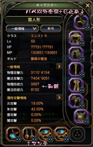 すごくお久しぶりなのです(゚д゚)!どうも鎖の子でs!最近どらねすは憐憫イベなるものをやってますにゃ(゚д゚)!!ネストなんて別にいいや系だったのに最近は毎日4人ネストにべったりです(`・ω・´)!そうそう(´・ω・`)ついつい日記書くの忘れちゃってたのだけど、うちの雪人形たんが結構前にLv50なってました( ´゚ω゚`)!いまこんなかんじ(´・ω・`)とりあえずGDしたけどまだ冠詞もくっつけてない部位あるし、潜在とかメインサブ武器しかry …orzでもメインサブに氷ついてテンション高くなりすぎて鼻血吹いた+.゚(*´>ω