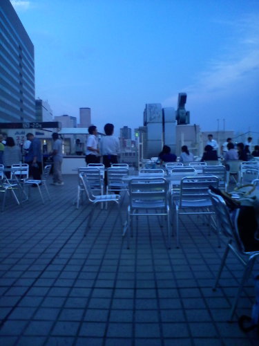7月22日今日は猛暑、パソコン教室の帰り三越屋上のビアガーデンで暑気払いをしました。男性女性6人開場は5時30分からです90分間飲み放題食べ放題です。 氷結ビールとやらを飲んでみましょう きっとギンギンに冷えてると期待を して行ったけどなにしろ30度を超えた猛暑なので冷えが悪く普通に冷えたビールでした。 まずは黒ビールでカンパ~イ とても美味しかったで~す。時間が早かったので席はバラバラそろそろ仕事帰りのビジネスマンで込み始めて来ましたビールサーバー前は行列です楽しい時間はあっと云う間に過ぎ、また来年の再会を約束をしてお帰りとなりました。私たちロートルは胃袋も高齢化しちゃって 飲み放題食べ放題は無理でした。雰囲気を楽しみ 健康と5歳くらい若くなりましょうね!スタイルも良くなってなどなど 私去年よりも8キロ スマートになったのよ 羨ましい~私も甘いもの食べないようにしますと約束したけど好きなものはやめられませんよね