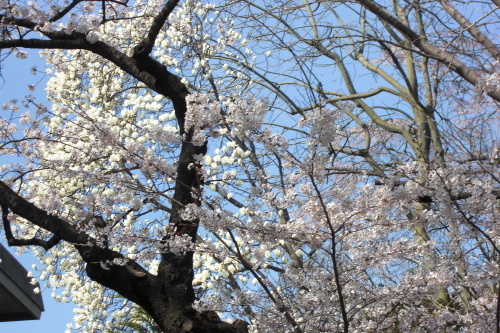 友達と東北大植物園へピクニックに行ってきました。昨日吹き荒れた風がうそのように晴れ渡り、寒かった気温も徐々に上がり真夏日の晴天です先日のテレビニュースで、八木山の片平付近の山でクマが出没したとか・・・怖いな~と思ったけど出会ったときは、ばーちゃんパワーで撃退よ 不安を打消しながら1から残月亭迄順調でしたが、広場迄の途中コースを間違て17まで上り坂が続き苦しかった。途中休み休み怖い熊の事などすっかり忘れひたすら広場をめざして歩きました。バンザーイやっと着きました。お腹はペコペコおにぎり最高美味 空がこんなに(写真)晴れ渡り、木々の梢はそよ風さわさわ~ここちよいメロデーを奏でています。最高な幸せを自然から頂いて思いっきり新鮮なオゾンを胸いっぱい吸ってリフレッシュしました。今年東北大文学部に入学した生徒さん達も授業の合間に広場でリフレッシュしていました。話しかけると集まってきてバアちゃんのお料理を食べおふくろの味だ~美味しいな~って故郷の母さんを想い出していたのでしょうねホントに孫のように可愛い、新鮮な大学生さん達でした。