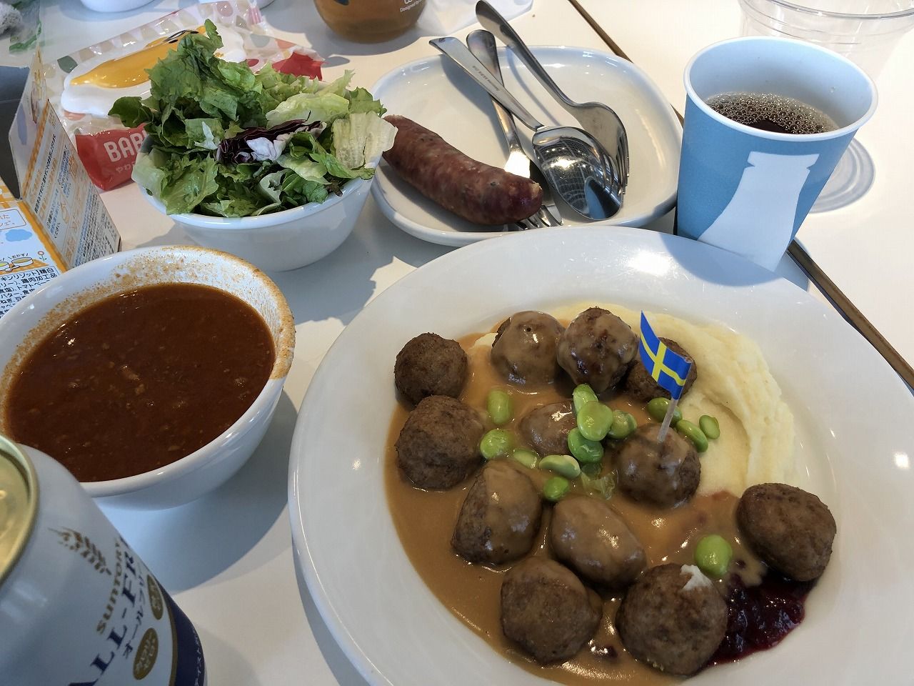 食堂でランチです!名物のミートボールも食べましたよ!なんか取りすぎて結局高いランチになっちゃいましたね。