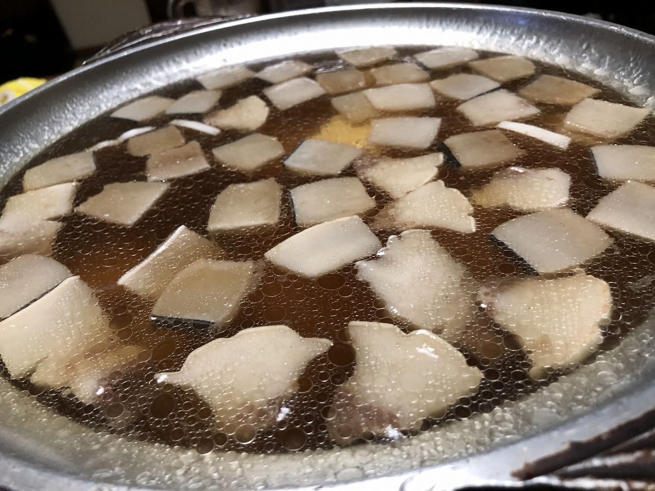 今回のメイン!クジラの鍋!クジラの皮をたっぷりと入れております!?