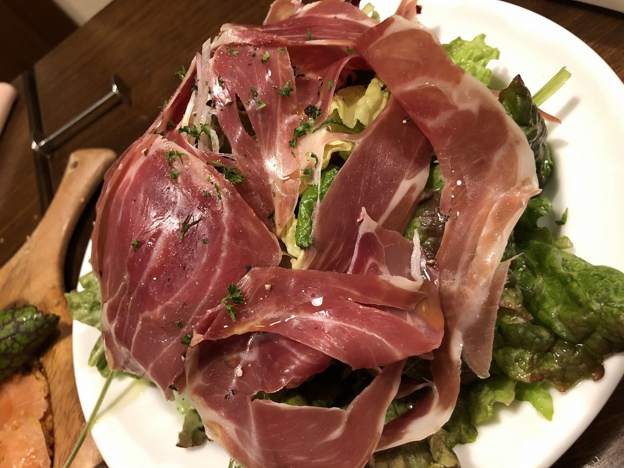 続いて生ハムのサラダ!なるほどフランスではこうやって喰うんだ!てな感じですかね?