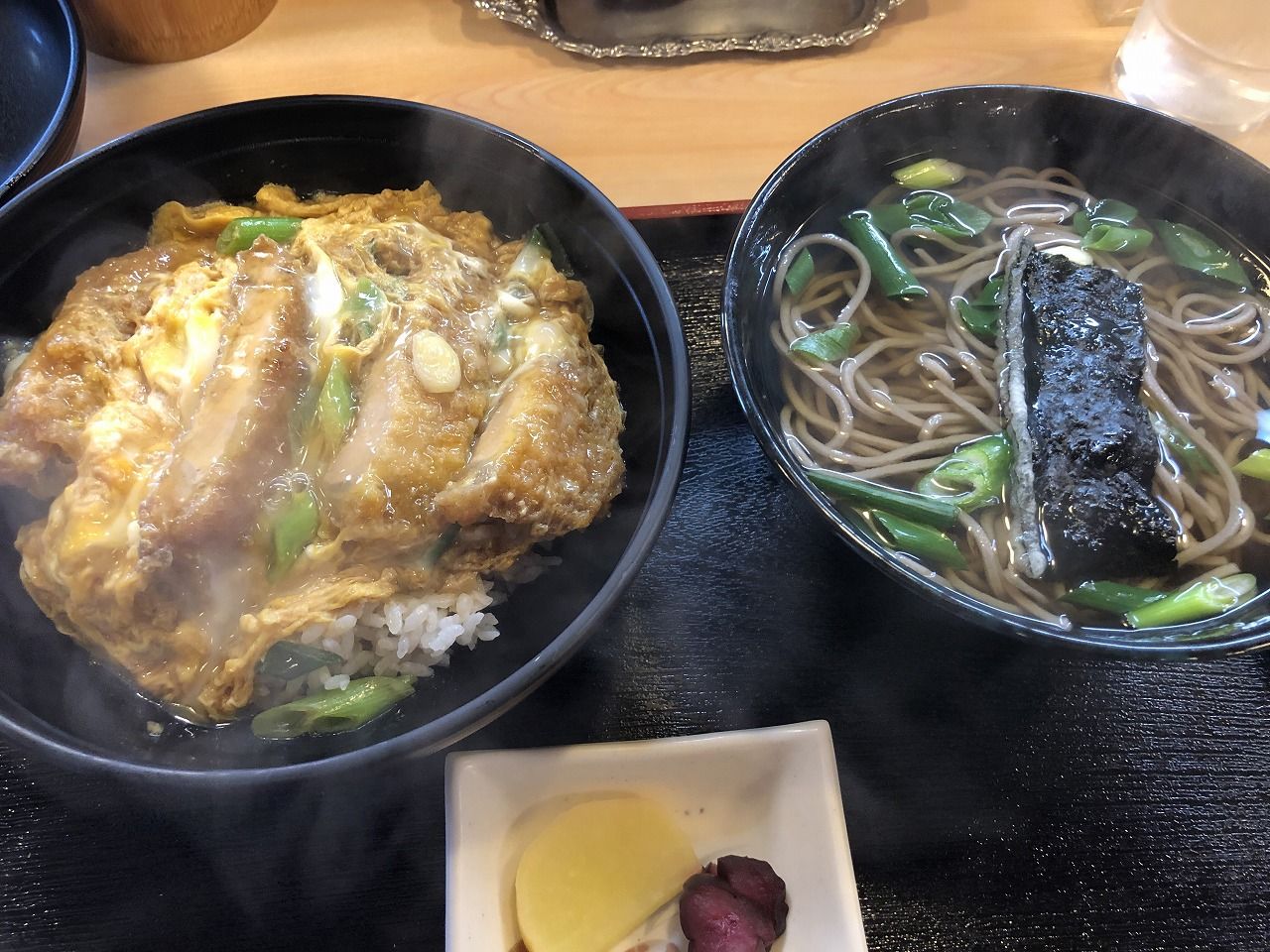 今日の日替わりは、かつ丼に蕎麦ですね。丼に麺類って最強の組み合わせです。