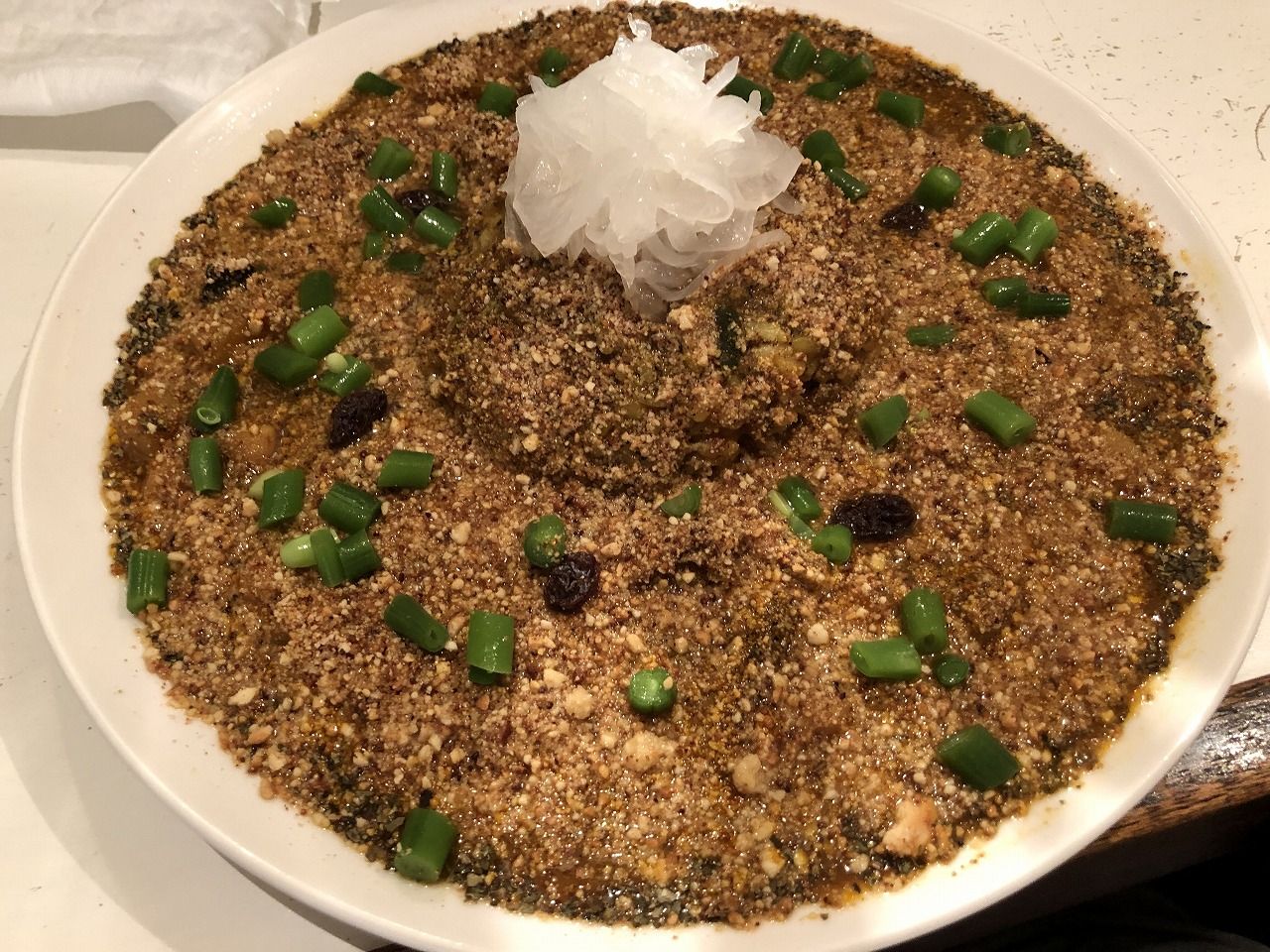 今回は野菜カレーを食べました。インゲンにジャガイモ、キノコなどの野菜が入っています。