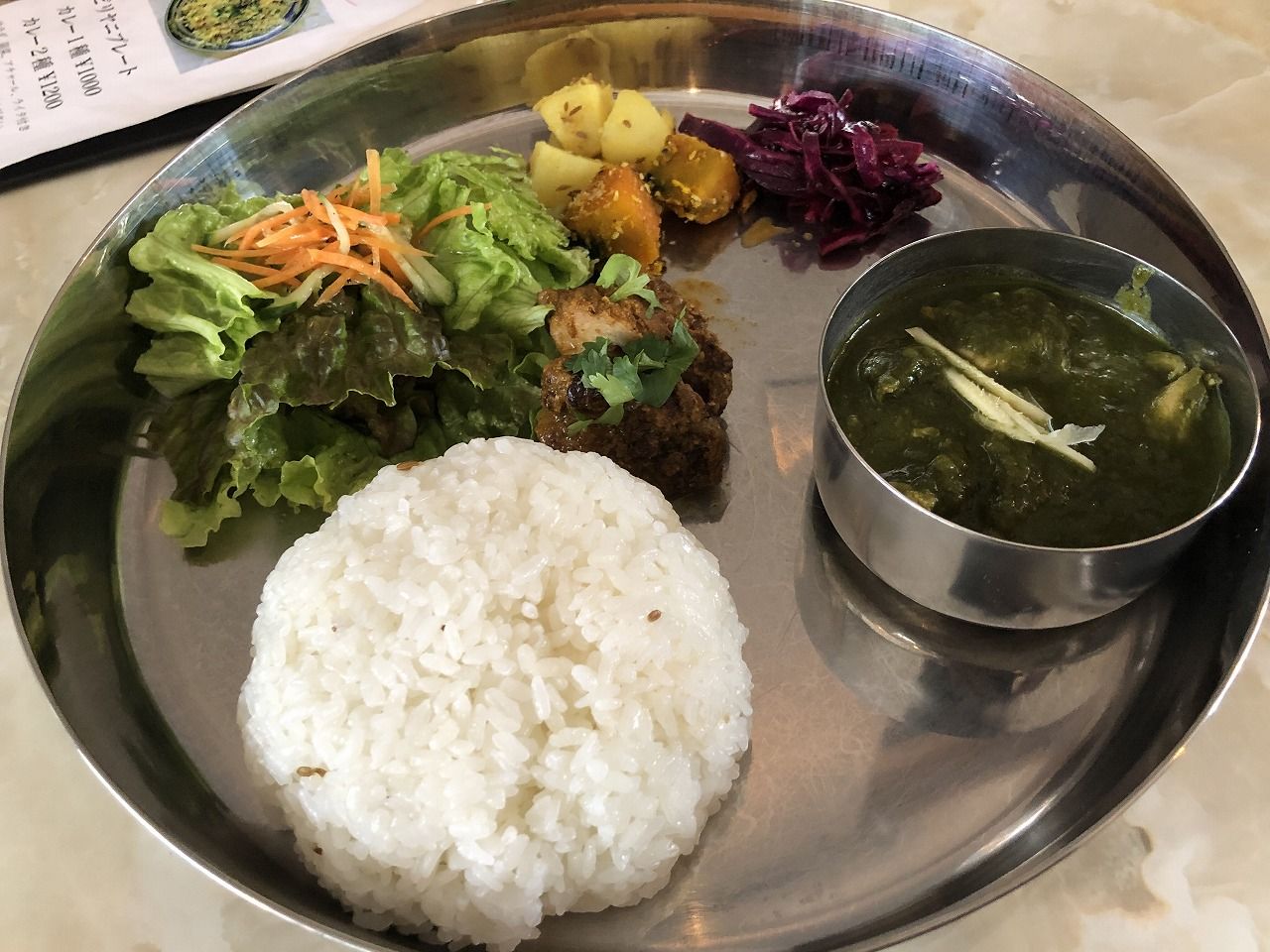 今回はほうれん草のグリーンカレーを注文!この店もカレーは数種類選べるけど今回は1種類だけ。
