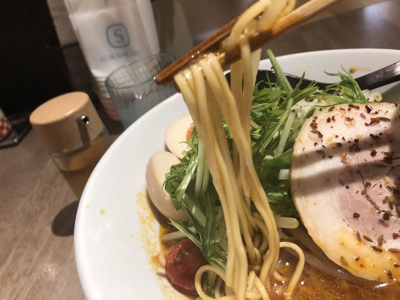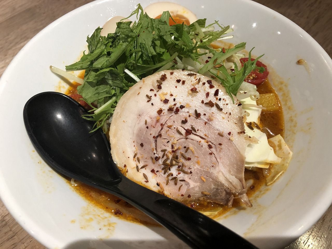 豚骨だけどパンチが効いたスパイスの香りと味わいが印象に残ります。