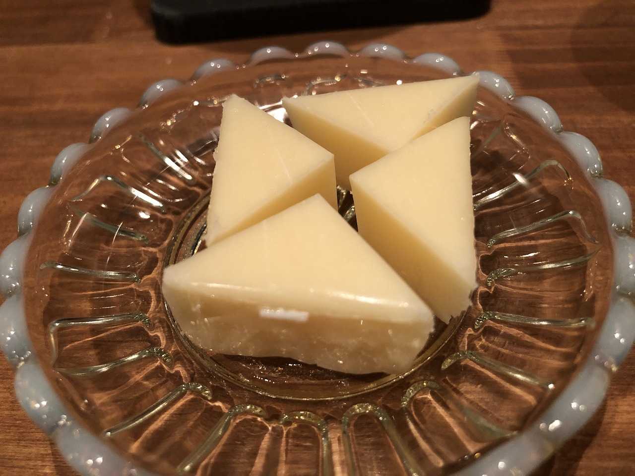 最後はプロセスチーズを熟成させてものらしいです。ねっとりした濃い味になっていましたね。どうやってつくったのかな?