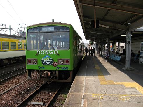 【岩徳線】 乗車区間 岩国~米川 2007年5月3日乗車 今回の乗りつぶし旅行の第一弾は、岩徳・錦川鉄道となる。岩徳線は岩国駅と櫛ヶ浜駅の間を結ぶ、営業距離43.7キロの非電化単線の地方交通線だ。現在の岩徳線は、元々山陽本線の短絡線として建設された経緯を持つ。路線の完成と同時に山陽本線に編入され、現在、海側を走る山陽本線は柳井線として運行されていた。その後に山陽本線が複線化されるに当って、現在の岩徳線側に長いトンネルを掘削しなければならなかった事もあり、元の海側を走る柳井線を複線化した上で、再度山陽本線に編入する事になった。これにより、それまで山陽本線として使用されていた岩国~櫛ヶ浜間を岩徳線として運行されることとなり、今日に至っている。運行形態としては、ほぼ全列車が岩国~徳山間を通しで運転されている。(岩国方面に向かう始発列車のみが、周防高森駅始発の区間運行となっている。)また、錦川鉄道の列車も全列車が岩国駅に乗り入れており、岩国~川西駅間の運行本数は結果として多くなっている。 広島から岩徳・錦川鉄道に乗車する為に岩国駅までやってきた。岩国駅の海側には、コンテナ貨車が多数停車しており、旧来の客貨分離される前の駅の雰囲気が残っている。岩徳線のホームは駅本屋側にあり、1番線を主に使用している。そのホームを切り欠く形で0番線が造られており、このホームを錦川鉄道が使用している。岩国駅にて 錦川鉄道のNT2000系 これから乗車する列車は錦川鉄道へ直通する列車で、今回はまず錦川鉄道の乗りつぶしを行なう。車輌は錦川鉄道が所有するNT2000系で、車体の外装には痛みが目立つ。導入から20年が過ぎる事を考えると、仕方ないのかもしれない。現在、新型のNT3000系を増備する計画あるそうで、来年まで3両導入されるそうだ。 岩国駅を出発すると列車は山陽本線を左側に見送り、右側に大きくカーブする。周囲は住宅が立ち並び、市街地の雰囲気が続く事になる。列車は快調にスピードを上げて先に進むが、やがて駅間に閉塞信号機が現れるなど、かつての本線の名残を思わせてくれる。住宅の密度が少し薄くなってくると、何となく『山』の雰囲気となり、短いトンネルを潜る。トンネルを出るとまた住宅地が広がり、程なく西岩国駅に到着する。駅は対向式ホームを持った列車交換可能な駅だが、かつてはホームも3番線まであったらしく、現在、昔の2番線は線路も撤去されて使用されていない。昔は山陽本線だったという事で構内の有効長は長く、単行で走る列車には長いホームも無駄に映る。駅舎は昔の雰囲気を残していて、かつての面影が垣間見える。駅を出ると、しばらくは住宅地が続くが、少しずつ密度が薄くなっていき、左にカーブすると岩徳線で唯一100mを超える長さを誇る錦川橋梁を渡る。錦川を渡る。 この向側に錦帯橋がある。 この付近に有名な『錦帯橋』がある。川を渡ると閉塞信号機が現れ、左に緩くカーブすると川西駅に到着する。この駅は築堤上に造られた、棒線にホームのみの駅だが、錦川鉄道にとっての起点の駅でもある。この事について事前に調査していなかった為でもあるが、路線の分岐駅がこの状態なのには驚かされた。この後、この列車に乗ったまま、先に錦川鉄道を乗りつぶした。 錦川鉄道を乗車した後、乗り換えの為に川西駅で下車した。時間は丁度お昼過ぎなので、予定ではこの駅周辺で昼食を取るつもりだったが、駅の状態を見ていて心配していた。高い位置にあるホーム上から眺めると、少し離れた場所だが、幸いにもスーパーマーケットが営業していたので、そこで弁当とビールを調達して食事を済ませた。食事を終えた頃に、次に乗車する川西駅12:42分発の徳山行きの列車が到着した。列車は単行のキハ40系で、乗客も学生を中心に立ち客がいる位の混み具合だった。当然にワンマン運行なので、ご他聞に漏れず、運転席横には大きなバックミラーが・・・ 駅を出ると、列車は右にカーブしながら『山』に入る。人家も殆ど無くなり、トンネルが現れる。このトンネルの入り口には場内信号機が2基建っており、このトンネルを抜けた場所に錦川鉄道と分岐する信号所が存在している。特に建物がある訳でもないので、普通の乗客は気付く事もないと思われるが、列車は分岐を直線側に進み、再度現れたトンネルの入り口に設置されている、柱野駅の場内信号機を見ながら先に進む。トンネルに入った後、運転席の付近にいると運行の邪魔になりそうだったことも問題だったが、乗客もかなり多いことから、乗降の邪魔になるだろうと想像できた。仕方なく、後方の風景を見る事にして陣取る場所を変えた。車内を移動中にトンネルを出ると程なく柱野駅に到着した。この駅は島式ホームを持つ列車交換可能駅で、丁度この駅で対向列車と交換した。駅の裏には山が迫り、周囲の雰囲気は山間の小駅といった感じだ。柱野駅を出発。 やはり無駄にホームが長い 駅を出発すると山