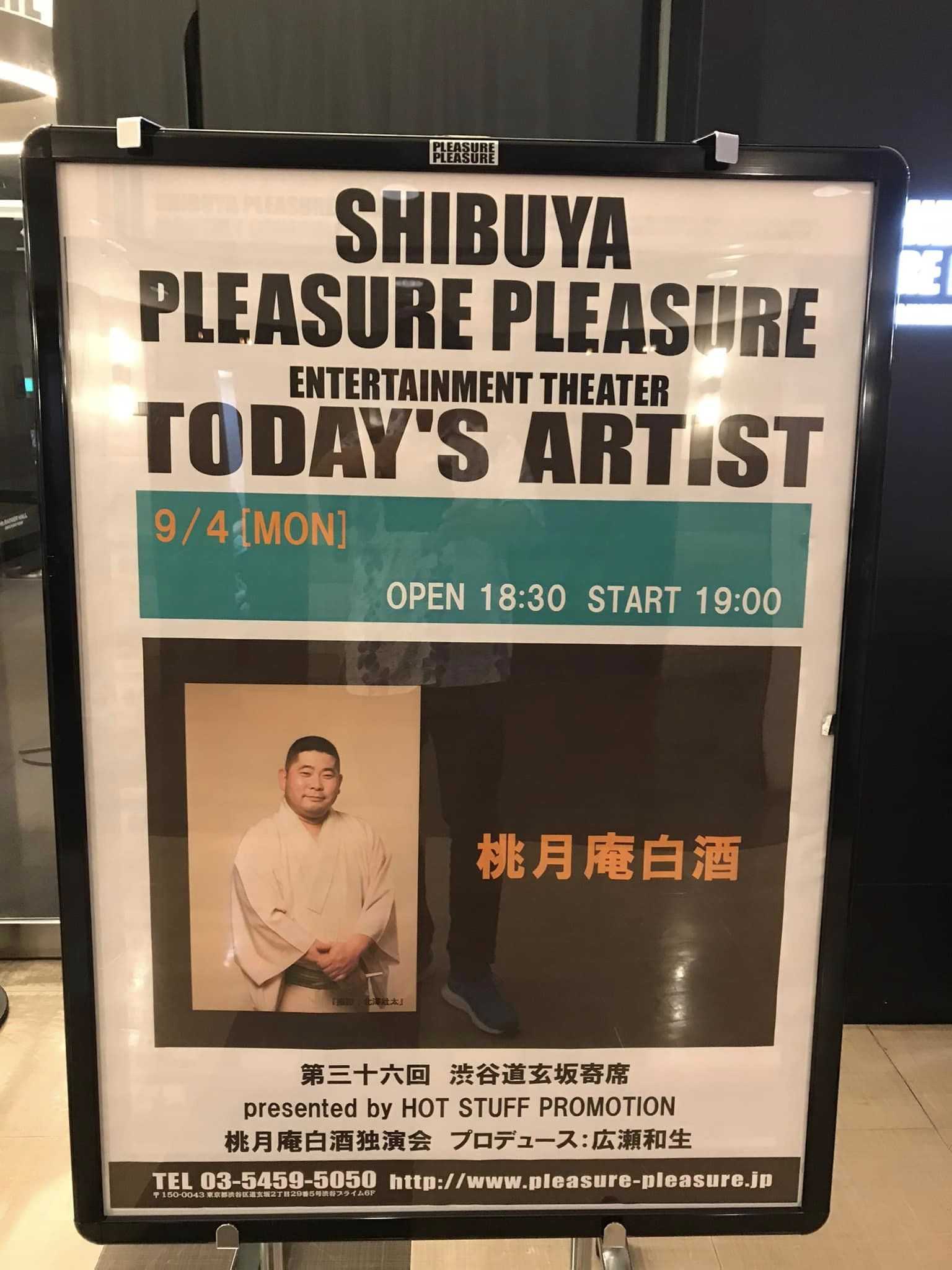 今日は白酒さんの独演会@SHIBUYA PLEASURE PLEASURE。3か月前の2023 Jul 5th 第三十五回 渋谷道玄坂寄席 春風亭一之輔独演会@SHIBUYA PLEASURE PLEASUREで、最前列の真ん中の席の券を買ったので白酒さんの唾を浴びながらの鑑賞。「代脈」、「笠碁」、「お化け長屋」。いずれも白酒さんの高座で聴いたことのあるネタかと思うが、迫力満点。白酒さんの表情の変化、声色のひとつひとつを味わえて極楽。「お化け長屋」は2週間前に2023/8/22@麻生市民館大ホール 柳家喬太郎・桃月庵白酒・春風亭一之輔 三人会での白酒さんの演目でお聴きしたが、その時は「お化け長屋」の脅かし返すサゲまでやらなかったので、ドタバタ振りを今日は堪能。「お化け長屋」の脅かし返すサゲのオモシロさは白酒さんと三遊亭兼好さんのお二人が抜群。2023/9/4@SHIBUYA PLEASURE PLEASURE 第36回 渋谷道玄坂寄席 桃月庵白酒 独演会 【HOT STUFF P/広瀬和生】「代脈」白酒「笠碁」白酒~仲入り~「お化け長屋」白酒