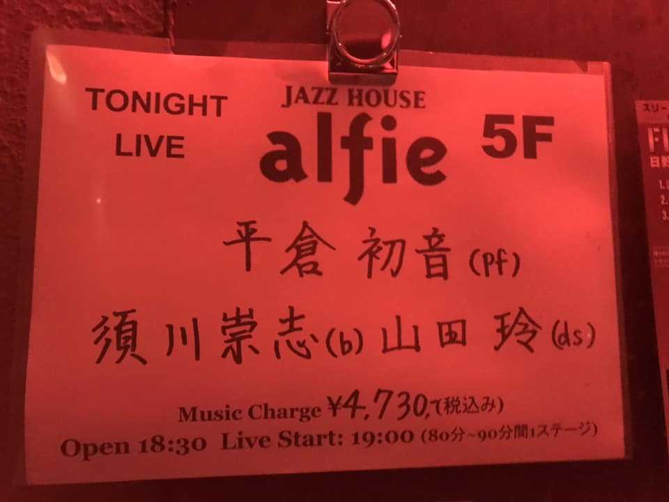 今日はハッツン(平倉初音さん)のトリオを聴きに六本木アルフィーに参上!