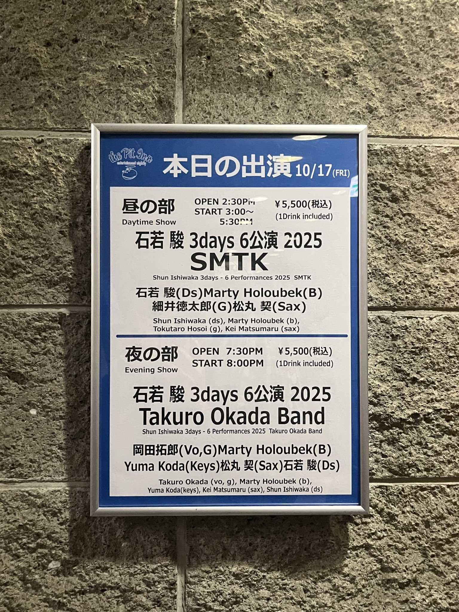 ​2025/10/17 Fri 石若 駿 3days 6公演 2025 SMTK@新宿PIT INN