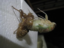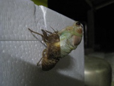 21時過ぎ、家裏で洗濯中の妻から蝉が羽化していると・・・あわててカメラの準備 可愛いいです この蝉、蛍光灯の明かりがあるにもかかわらず羽化それも発泡スチロールの箱 頑張れ、頑張れ5年から10年あまり裏垣の地面で生息していたのですから子供の頃は、そんなこと考えませんでしたね 歳とるにつれ、花の綺麗さもより綺麗に感じますいきとし生けるものって素晴らしいですね妻が子供たちを産んでくれた時の感動生命の命の大切さ改めて思います <続く>