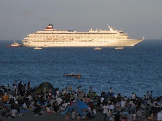 18時ごろ所用で花火会場の木本へ 帰りに客船を写してきました三隻 飛鳥2他です 花火は19時からですのでもう始まっているでしょうね 花火客は例年より少ないようです 18時頃の状況から写真は獅子岩周辺ですので、鬼が城に近い浜は人でいっぱいかもしれません私も今から今日帰省してきた長女と見に出かけます