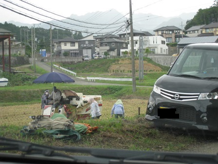 母の姉の初盆でした その灯篭焼きに御浜町行く途中で金山町内で稲刈りがおこなわれていました 町内トップかな私も例年熊野花火大会前後に刈っていましたが(今年から稲作やめましたが) 急いでいたのでコンバインオペレーターを確認しませんでしたがこの田んぼの持ち主であれば85歳位の方なのです すごいですね 台風で倒れた稲、コンバインでは無理なようで手で刈っていますねそれも70歳過ぎのおばさん 町内の農業従事者は60歳では青年層なのです背負向けている男性は50歳半ばくらいの方の思います 超若者です雨がぱらついており、籾を濡らすと大変な作業なのです明日は熊野大花火大会、でも百姓には関係ないのですね 最初の写真、多くの住宅が建っています昔はこの住宅地は山と一部ミカン畑だったのです保守的なのかな、自然壊してまで金山町に家が増えなくてもいいのです でも仕方ないのですミカン栽培ができなく(価格低迷、高齢化)で、山、田畑を売ってしまうのですね町内の地のお爺ちゃん、お婆ちゃんが、子供の住む都会へそして地以外人が町内に住む どこか寂しいものです