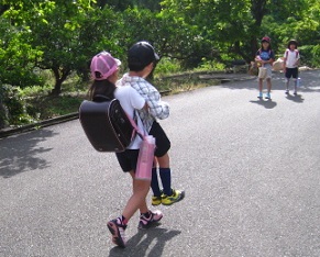 最近の集団登校の児童達 上級生が集団の先頭と後をはさんでなくバラバラ登校のようで昔と違うなと思っていましたが個人主義なのかと・・・・しかしそうではなかったようです みなさん思いやりがあるのですね 数日前の出来事です学校に行くのが嫌なのか体調が悪いのか上級生の女の子が最初はおんぶしていたのですが、抱えています 心配そうに二人の児童が待ってくれているのです なんかいいですね用事を済ませて車に乗ろうとした時に何気なく振り向くと 先ほどの男の子は一番先頭でも今度はこけたのか、女の子が座り込んでします左の子がランドセルを前でしょっています 子供達が助け合って登校って素晴らしいですいつまでもこの気持ちで大きくなってほしいものです 子供の声聞こえる町内はいいですよ同じ市民が町内に引っ越してきた方たちの御子さんです昔からの地の人の御子さんはほとんど居られません地の者が他所で家を建てて地元から去りこの寂しさも大きいものです 贅沢な思いかな?