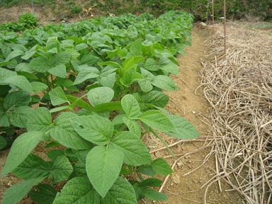 枝豆ってビールのつまみに欠かせませんね 畑の枝豆が育ってきました 昔は田んぼの畔塗りをした部分に蒔いたのですが下肢障害で稲作をやめましたので、畑での栽培です 収穫は夏ですが 両親と家とで終わりの量かな? 少しは軽く茹でてから冷凍保存します 隣は里芋です 収穫が楽しみですね もうすぐ梅が採れそうです 畑から谷の急斜面ですので今の私では大変な作業になりそうです家で食べる分のみ 買ったほうが安いかもね