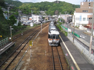 熊野へお越しはJRワイドビュー南紀もいいですね高速道路も開通してマイカーの便利もよくなりましたが列車の旅もいいのではないでしょうかゆっくり市内のホテル等に宿泊されて熊野観光をお勧めします 「乗って残そうワイドビュー南紀」・・・昔よく言われましたねJR紀勢線の乗客は地域人口の減少(特に学生・熊野高専の移転)で・・・高速道路開通記念等のイベントは多くありましたがJR問題や新鹿インターにできると思われていた道の駅がができなかった事が不思議でなりません 熊野市駅の風景です 特急ワイドビューです 尾鷲方面から 新宮へ 地磯釣り、渓流釣り、渡船釣り、島に渡りって・・・熊野古道、金山ミカン狩り(ブルベリー狩り) 観光施設・・・新鹿海水浴場、 キャンプ※時期に注意が必要ですが 作られたものより自然のままの熊野がいいですね観光化もいいのですが私は昔のままの熊野が好きなのです 辺鄙さがあって神々の国と思うのですが・・・昔の命がけの熊野詣でもわかるのではないでしょうか金山町内にも行き倒れのお地蔵さんがあります