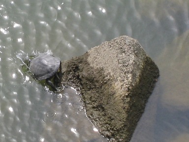 志原川という川が御浜町にあります私が津波遡上に関して心配している川です三重県では降雨量のよる浸水マップを作っていますこの川は流れが緩やかで上流は産田川とよばれ熊野の産田神社横を流れています この辺までマップでは浸水予測をしていますね 本題ですがこの志原川には淡水亀が多く生息していますウナギも多いようですね 昔はシジミも採れたそうです写真は問題としている河口の水門から撮りました 私の足音で川に飛び込む 家族かな? 周囲をうかがってほんの少しの音で潜ってしまいます みなさん、志原川に川船(ボート)を持参して川のぼりもいいですよエンジンや櫓なくても、5m位の物干し竿があれば川底が浅いので川底を棒で突いて移動可能です熊野川(瀞渓)のような絶景はありませんがゆっくりお金も使わず楽しめるのではないでしょうか (救命具は必要ですよ)